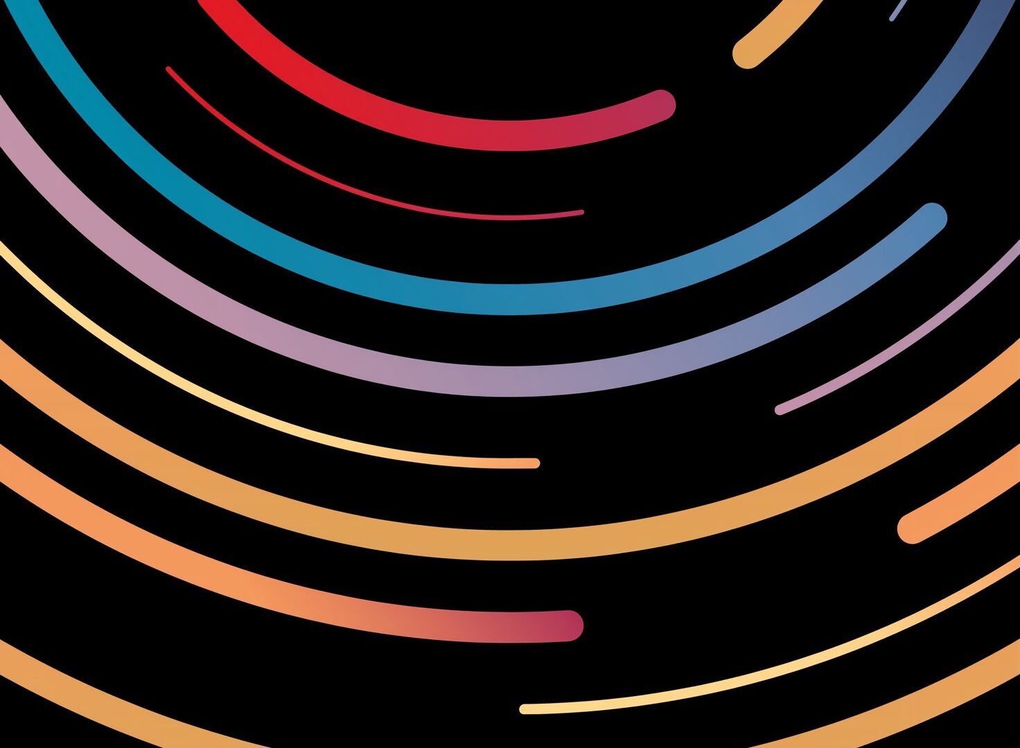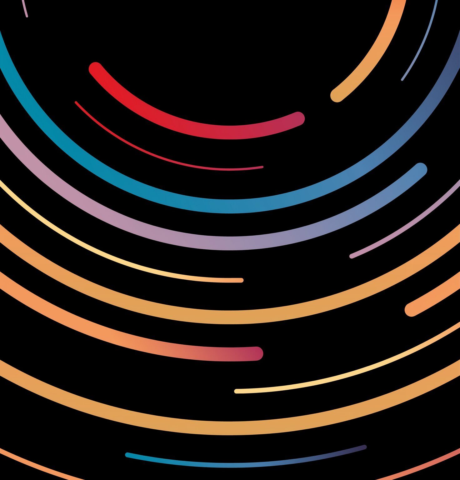 Concentric colored lines radiate from a central point against a black field. Varying line lengths and a spectrum of colors create a sense of…