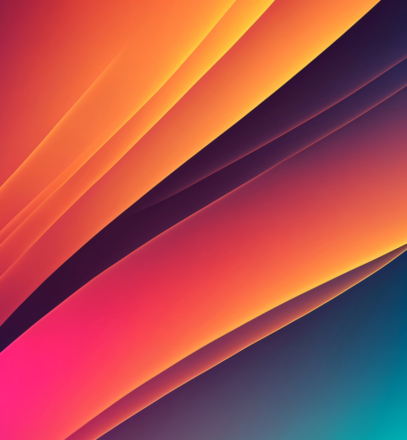 Overlapping bands of color form a dynamic abstract composition across the frame. Smooth transitions between red, orange, pink, and teal crea…