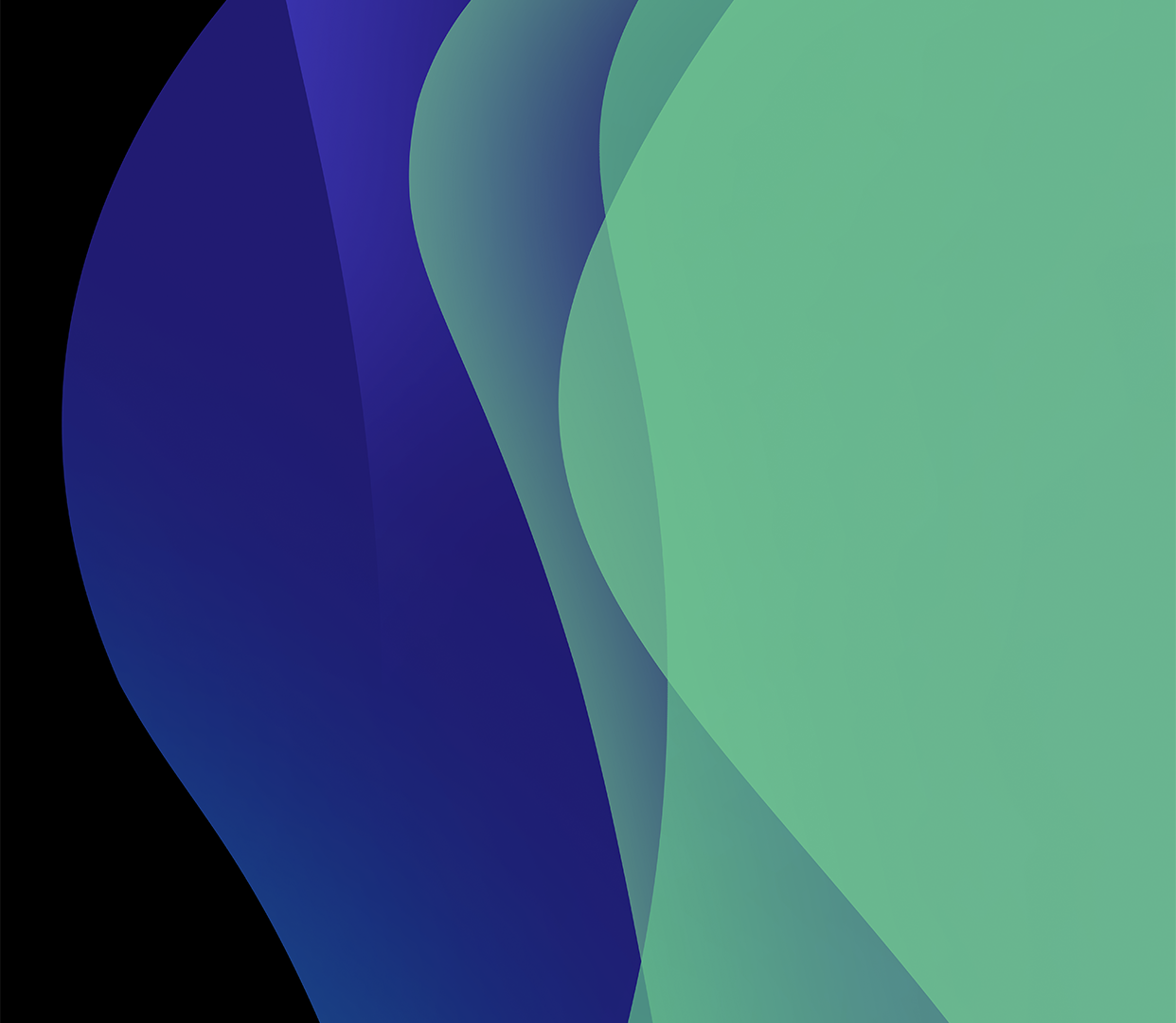 Overlapping organic shapes fill the frame against a dark background. The colors transition from deep blues to bright greens with soft, blurred edges.