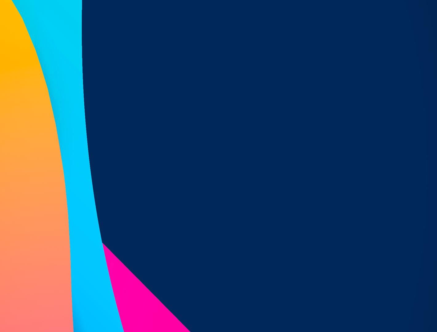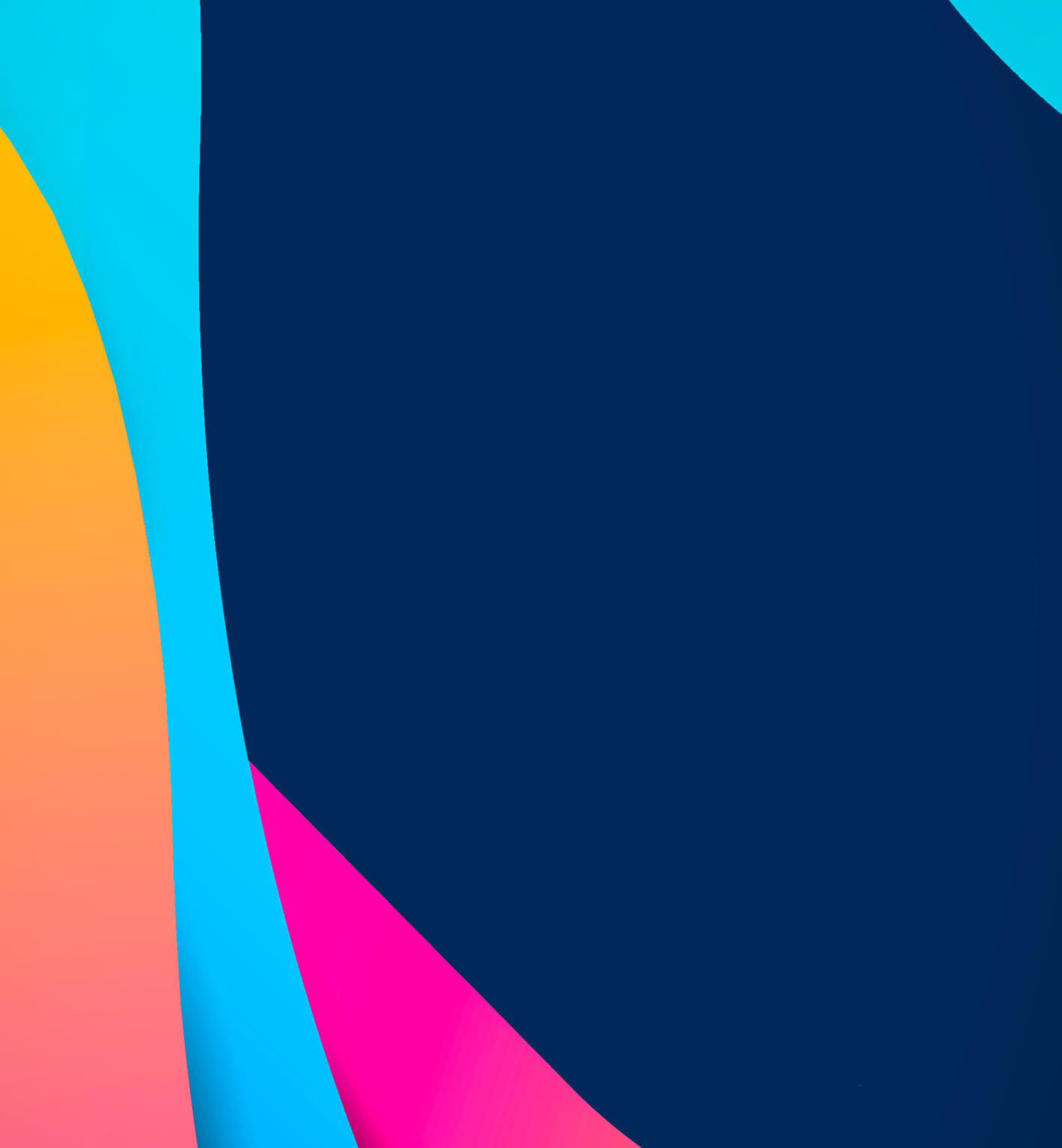 Overlapping layers of color create an abstract composition with smooth curves. The color palette mixes shades of blue, orange, pink, and yel