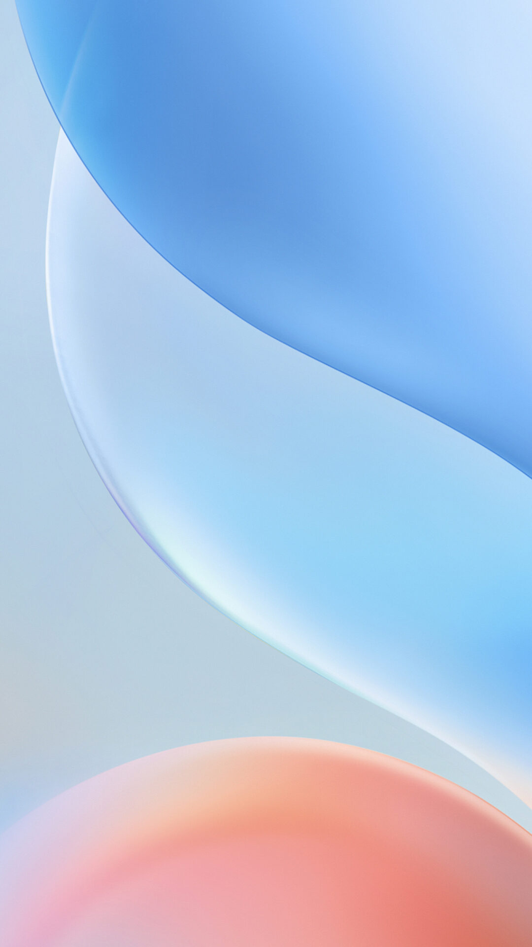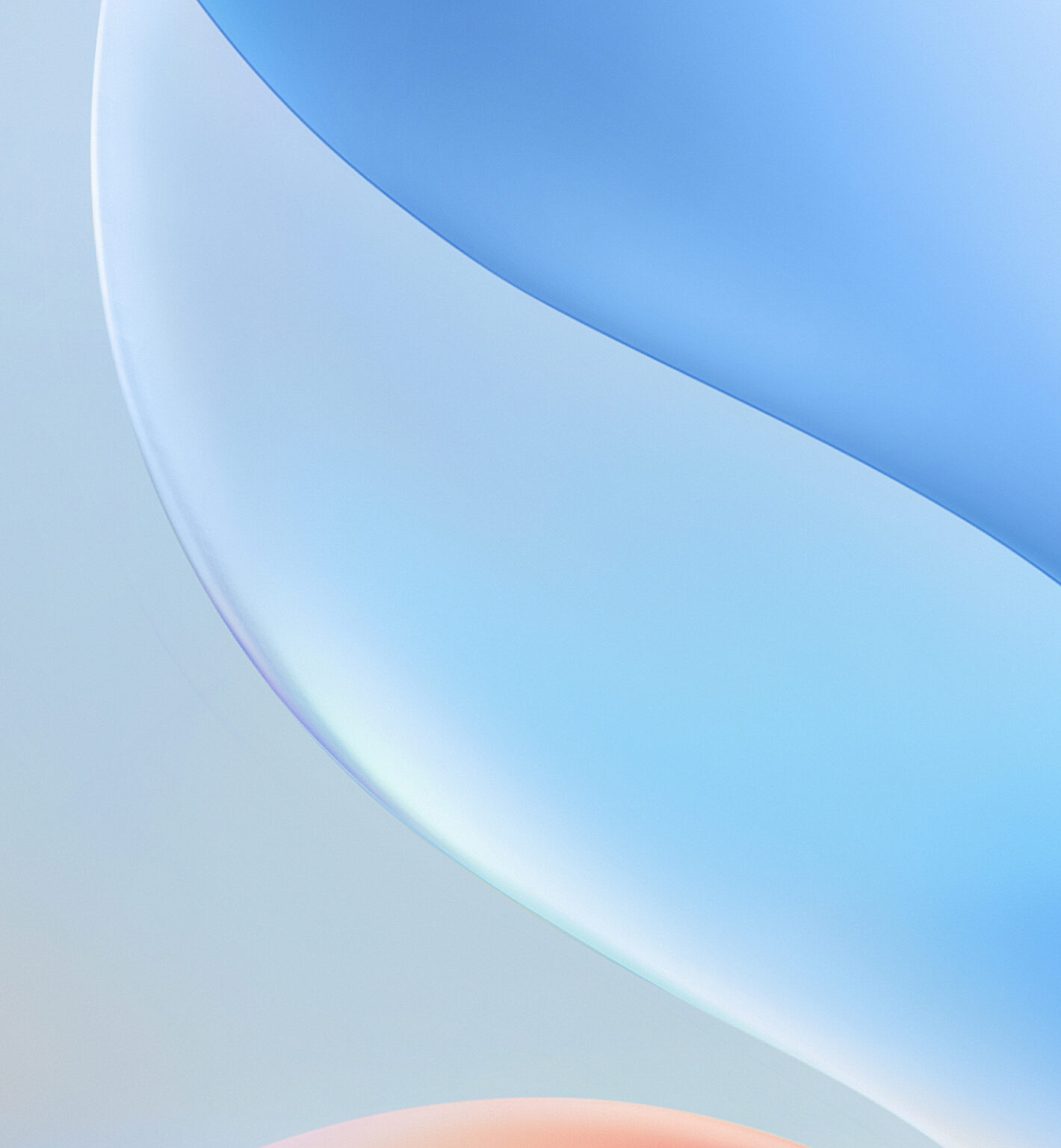 Overlapping rounded shapes fill the frame with soft color. The gradient shifts from peach to light blue, creating a smooth and airy feel.