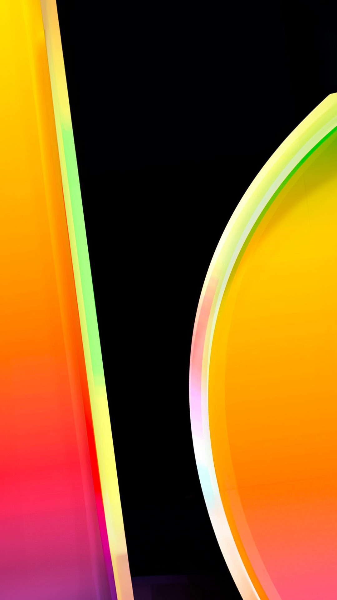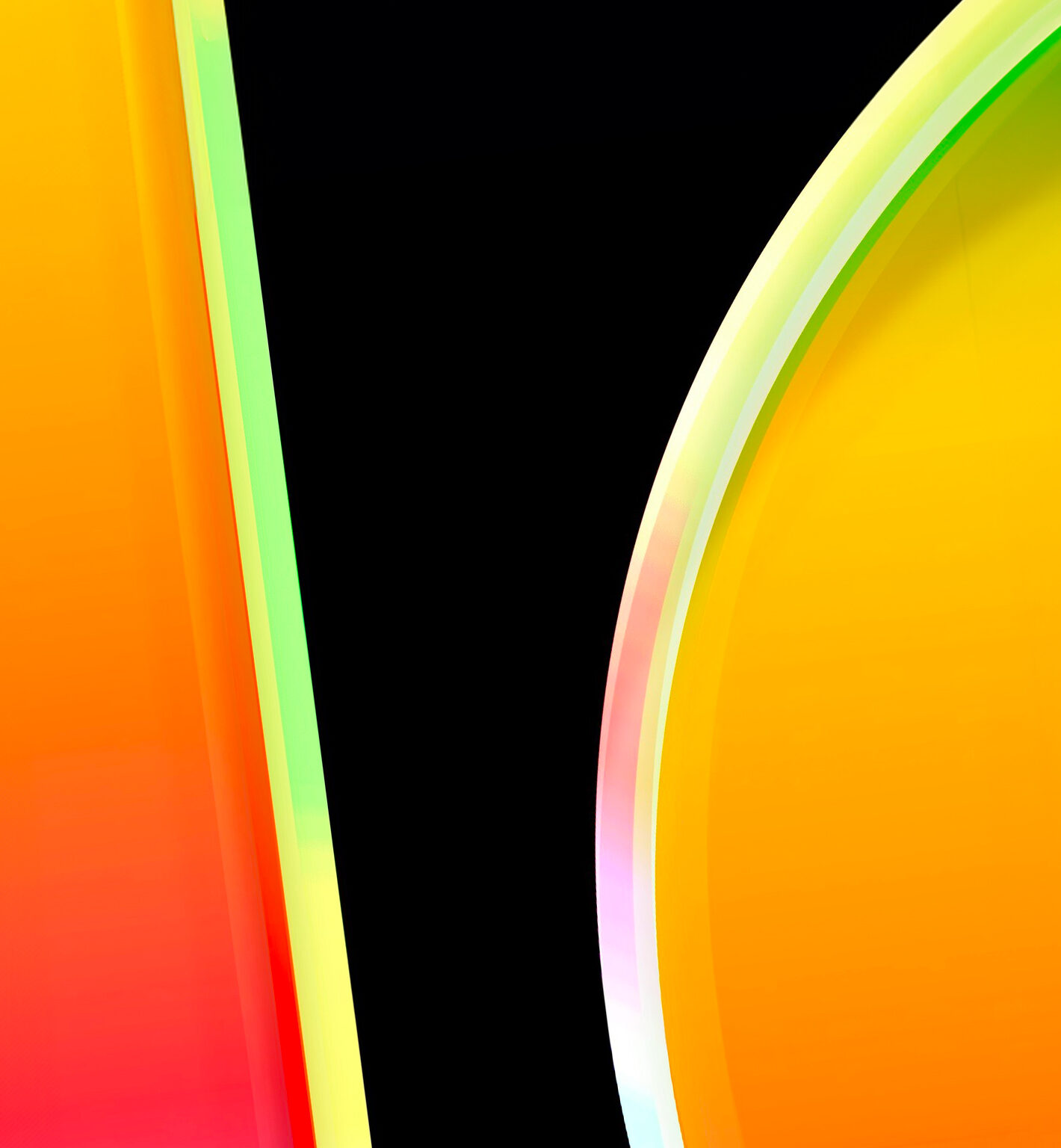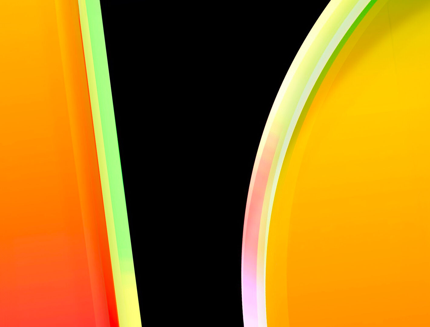 Colorful abstract shapes fill the composition against a dark background. The smooth color transitions and bright edges give a soft, glowing