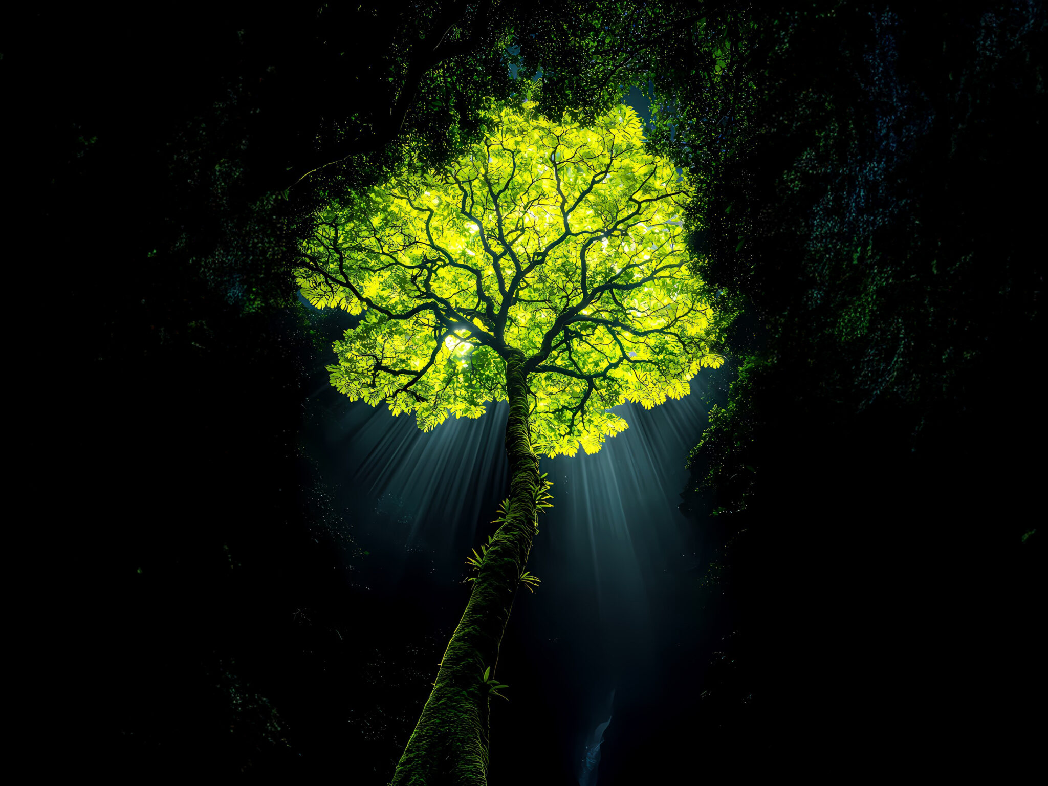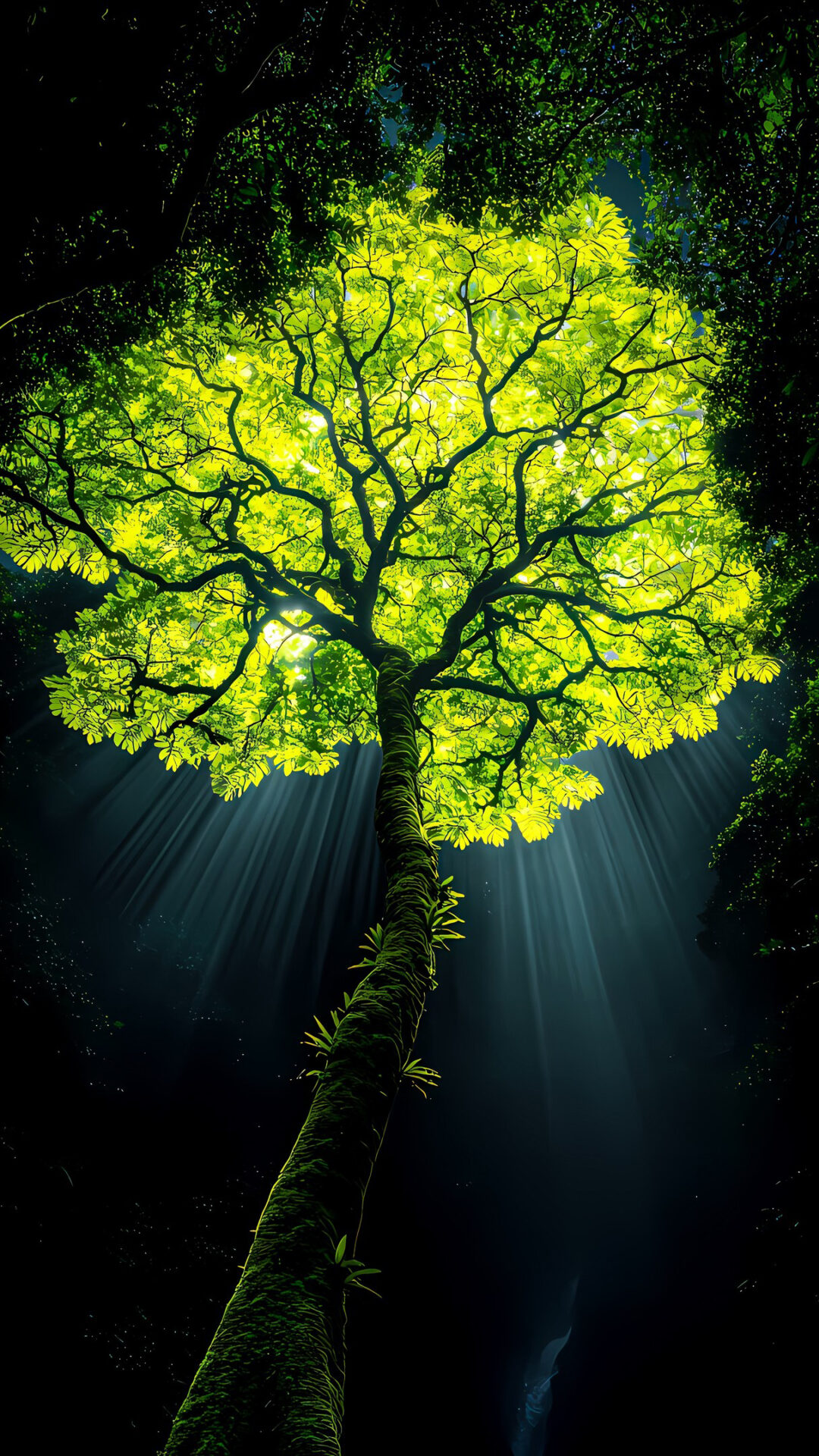 Ancient Jungle Tree Pierced By Light wallpaper 4K