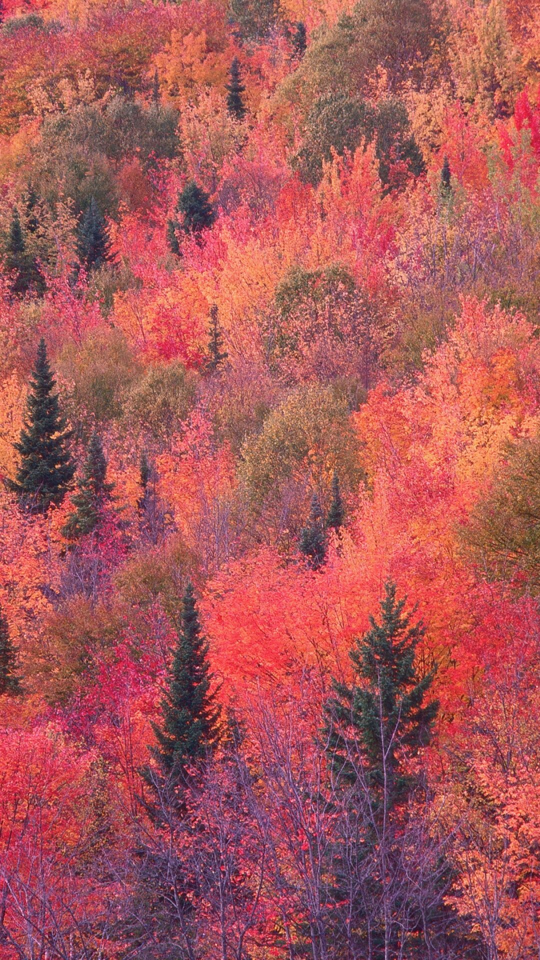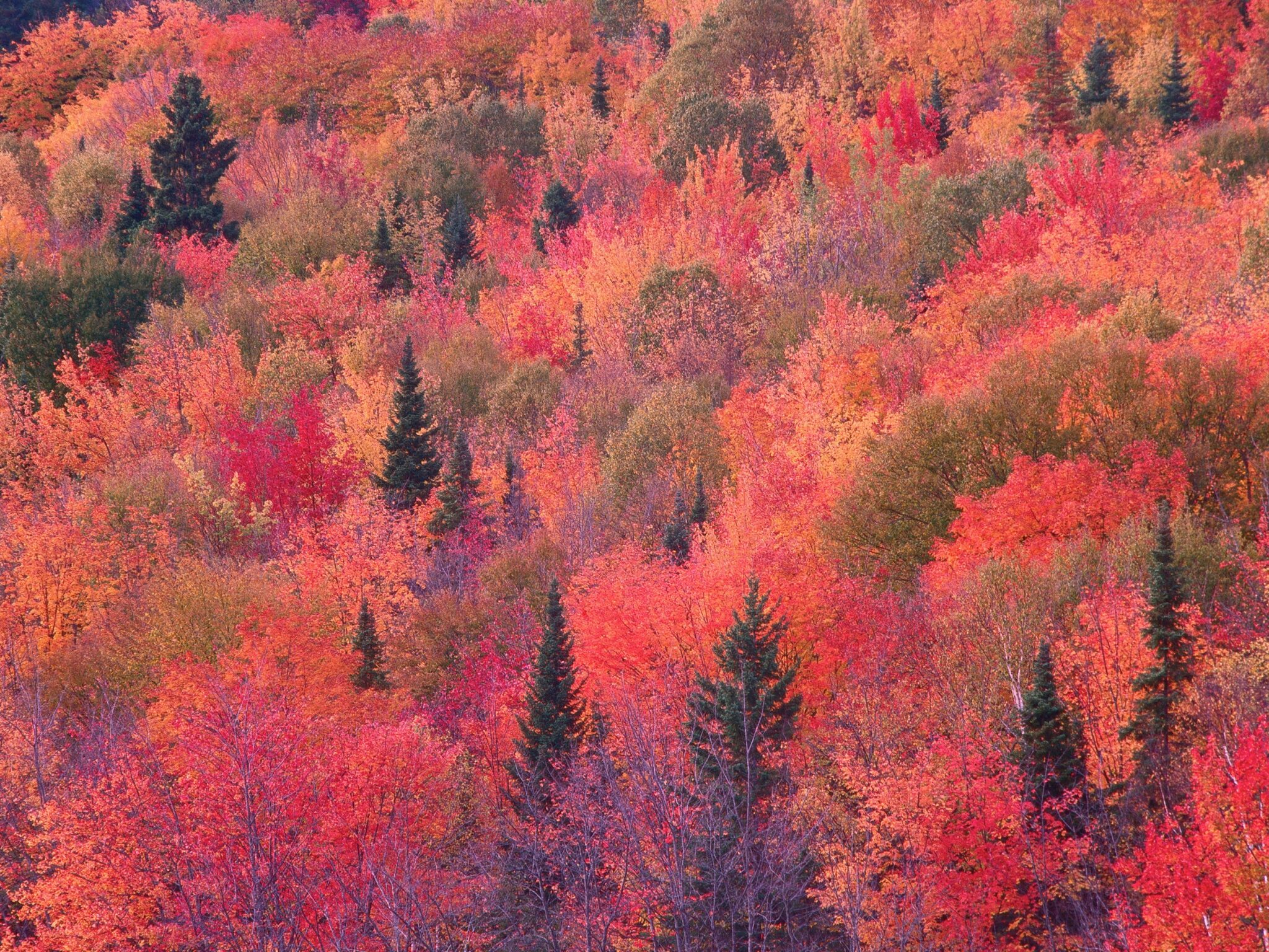 Gorgeous aerial shot of an autumn forest packed with fiery reds, warm oranges, golden yellows and scattered dark green evergreens creating an incredible patchwork of fall color. For 4K monitors, this classic Mac OS X Mountain Lion stock wallpaper brings peak foliage season to your desktop.