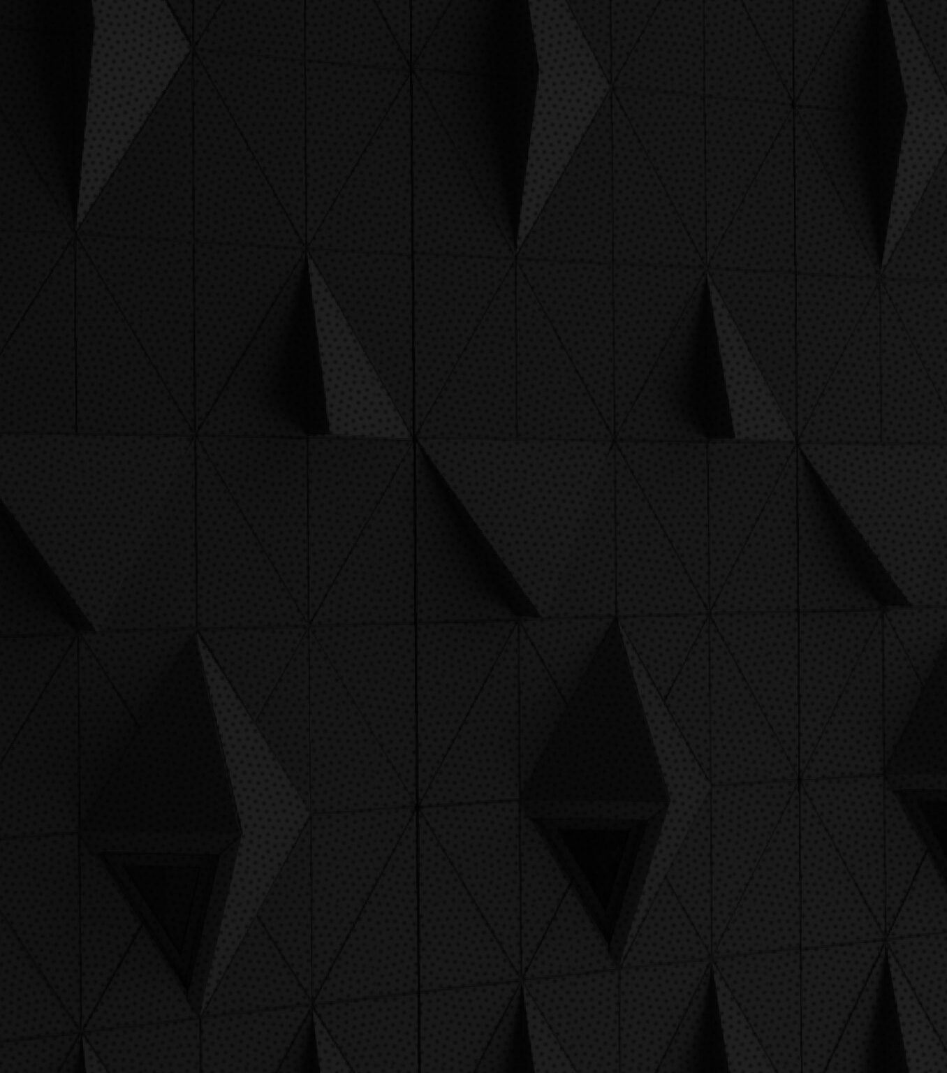 A repeating pattern of dark, angular shapes covers the entire frame. Subtle variations in shadow and light define the depth of each facet wi