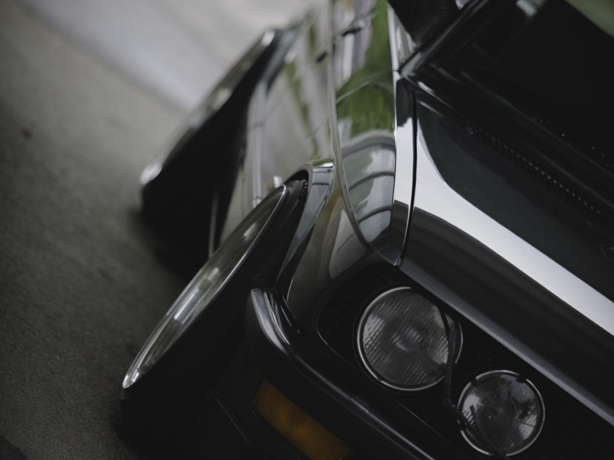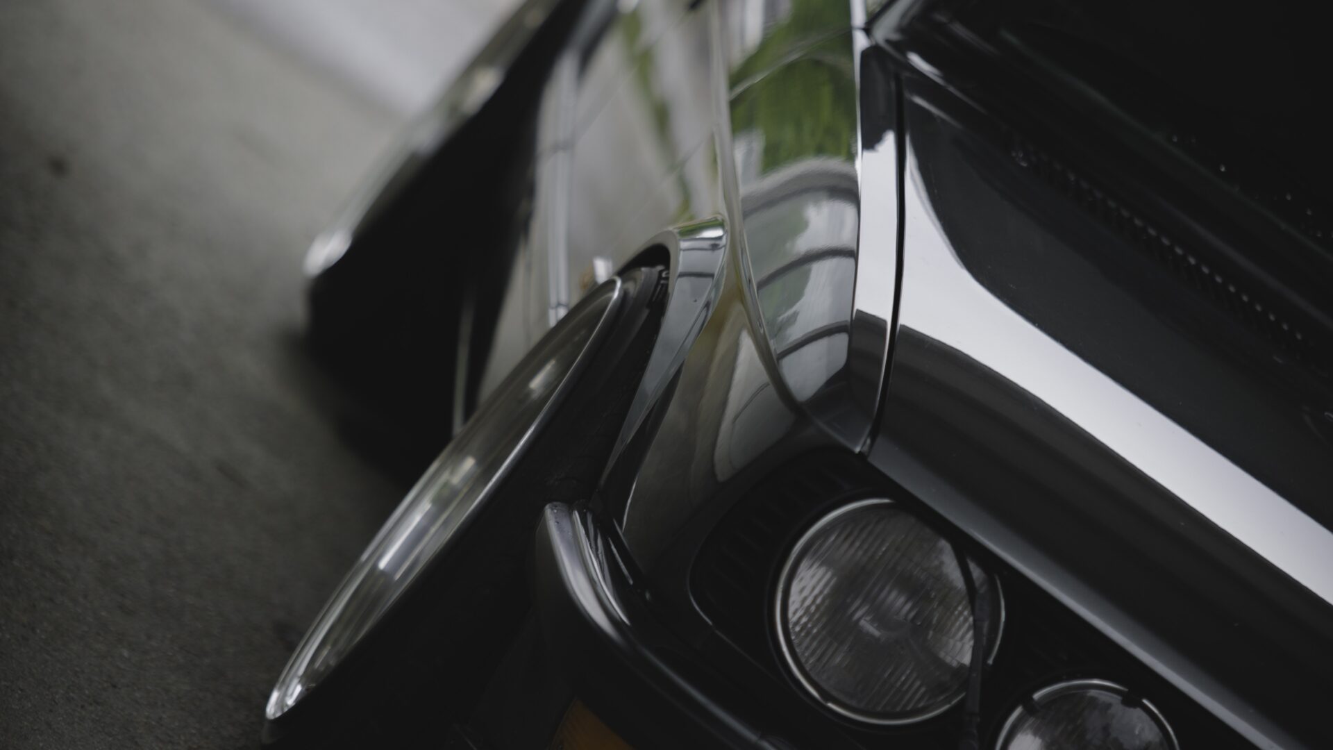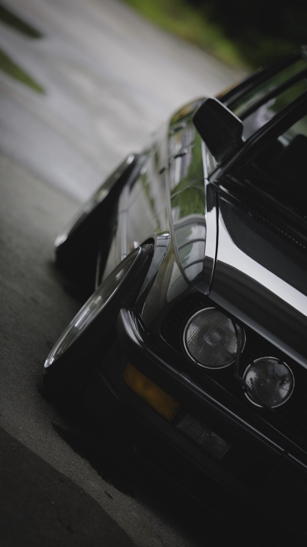 Sleek curves of a midnight-black performance machine catching subtle light against deep shadow. Moody, understated power for your lock screen.
