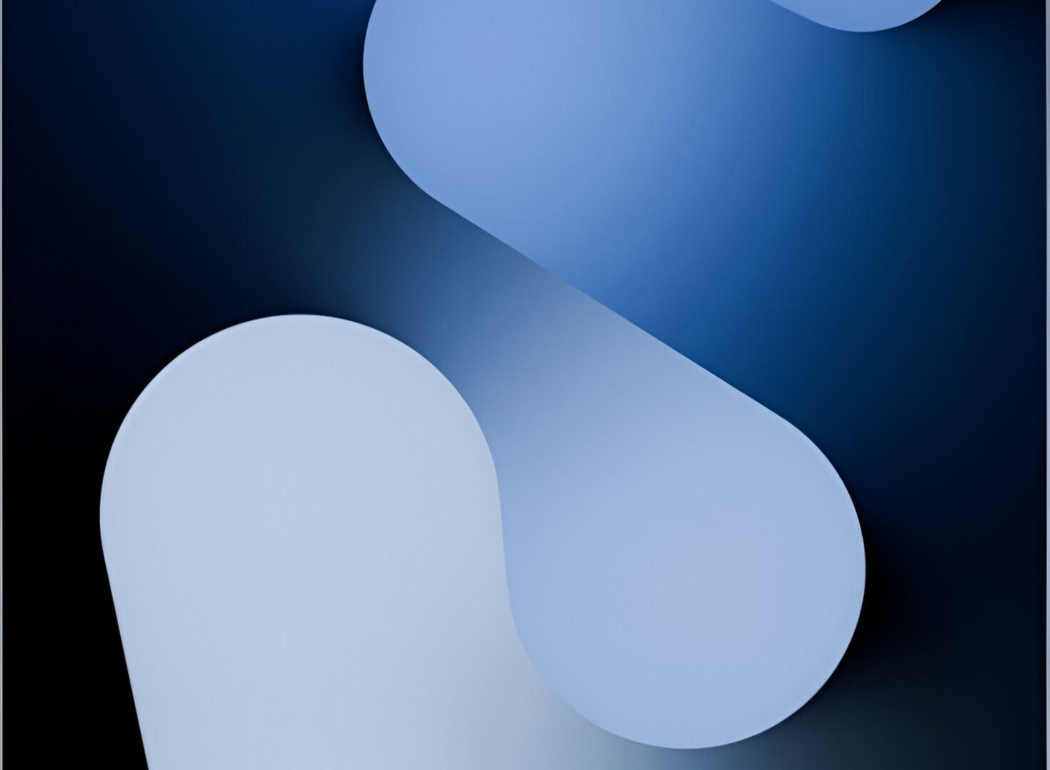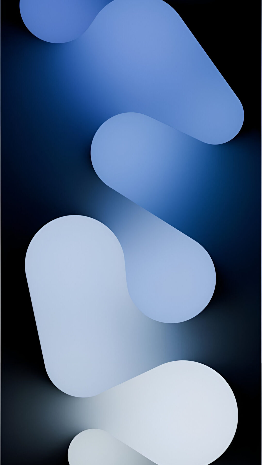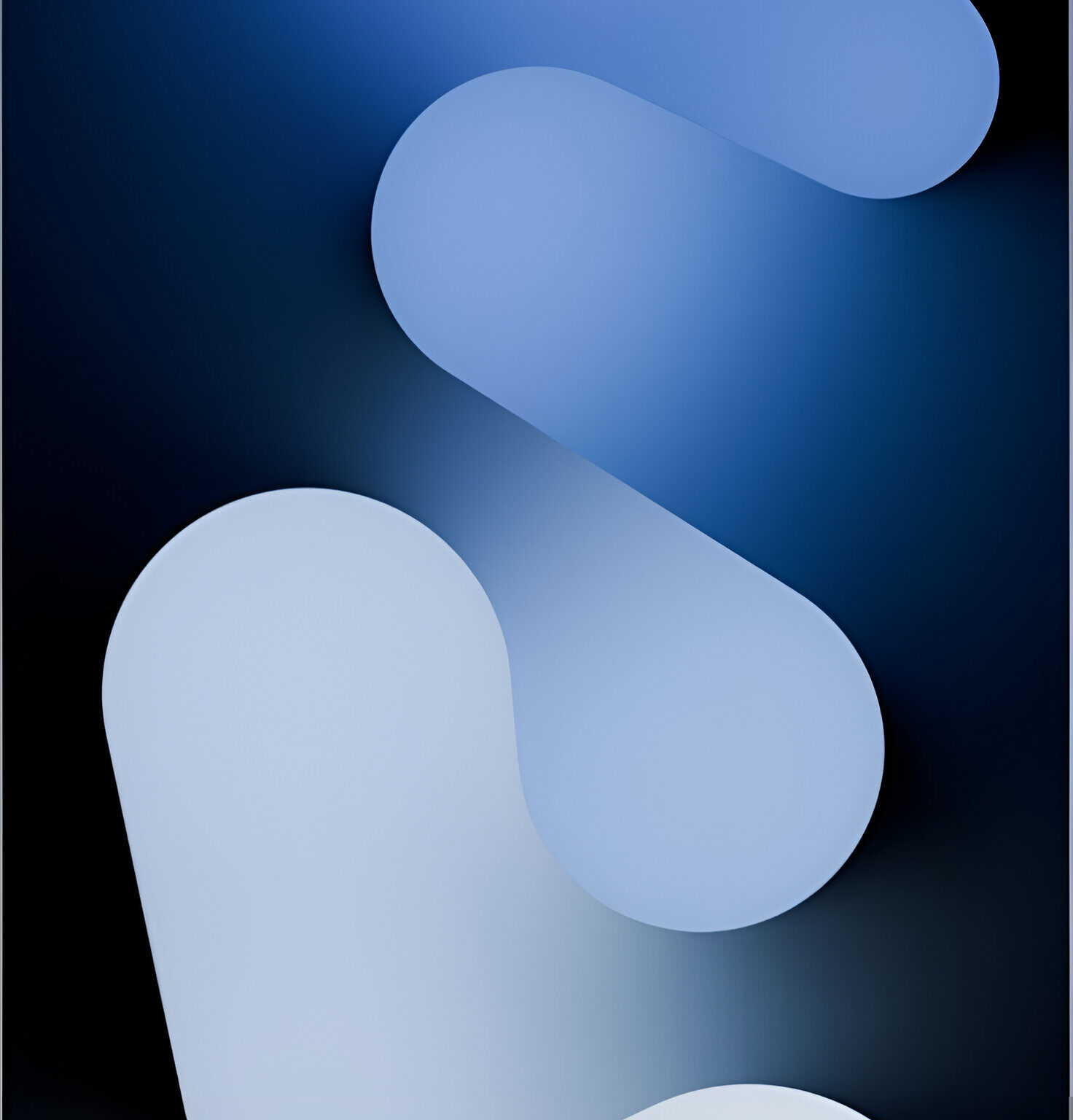 Vertical composition of overlapping rounded shapes fills a dark background. Subtle gradients within each form create a soft, layered depth with varying shades of blue.