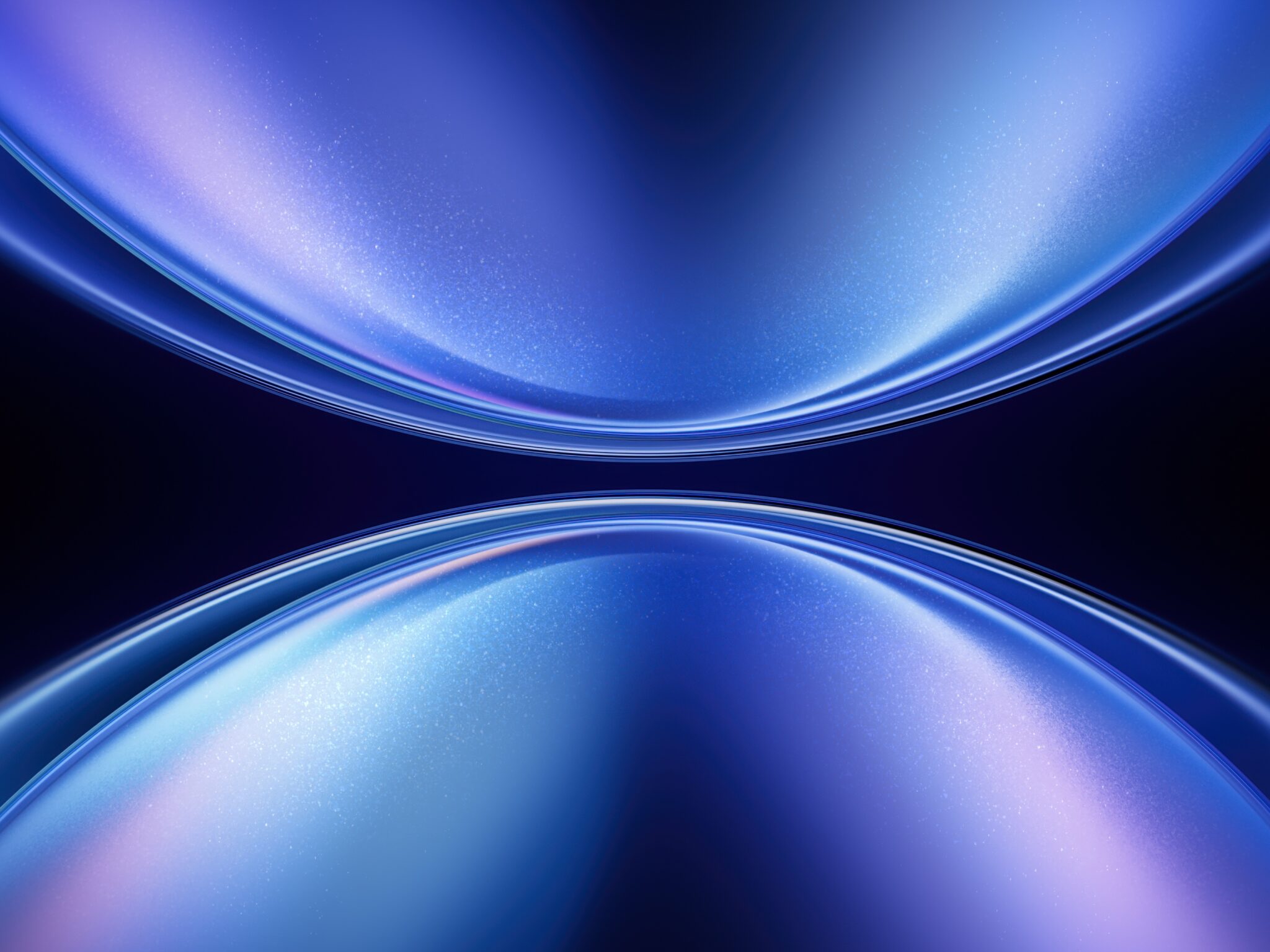 Two mirrored, curved forms fill the frame against a dark background. Soft gradients of blue and lavender create a smooth, polished texture w