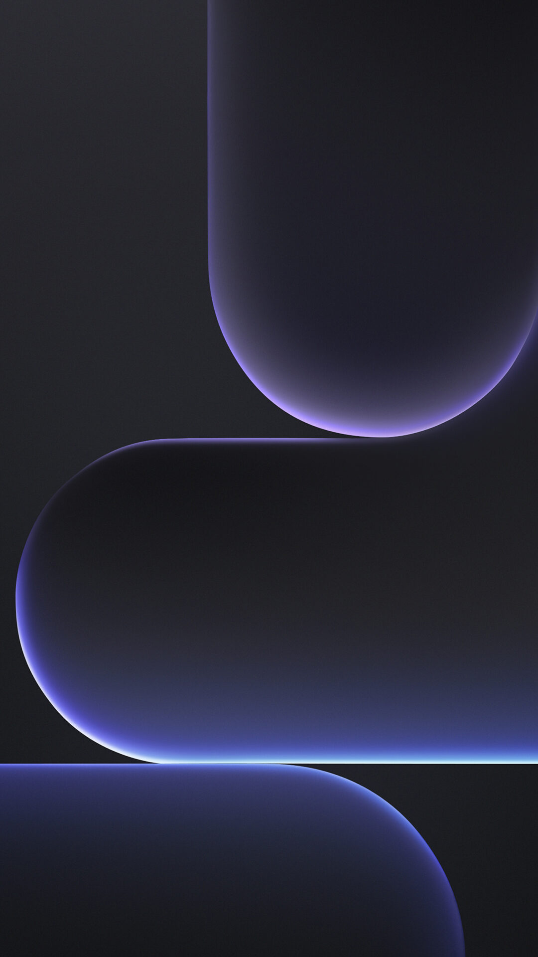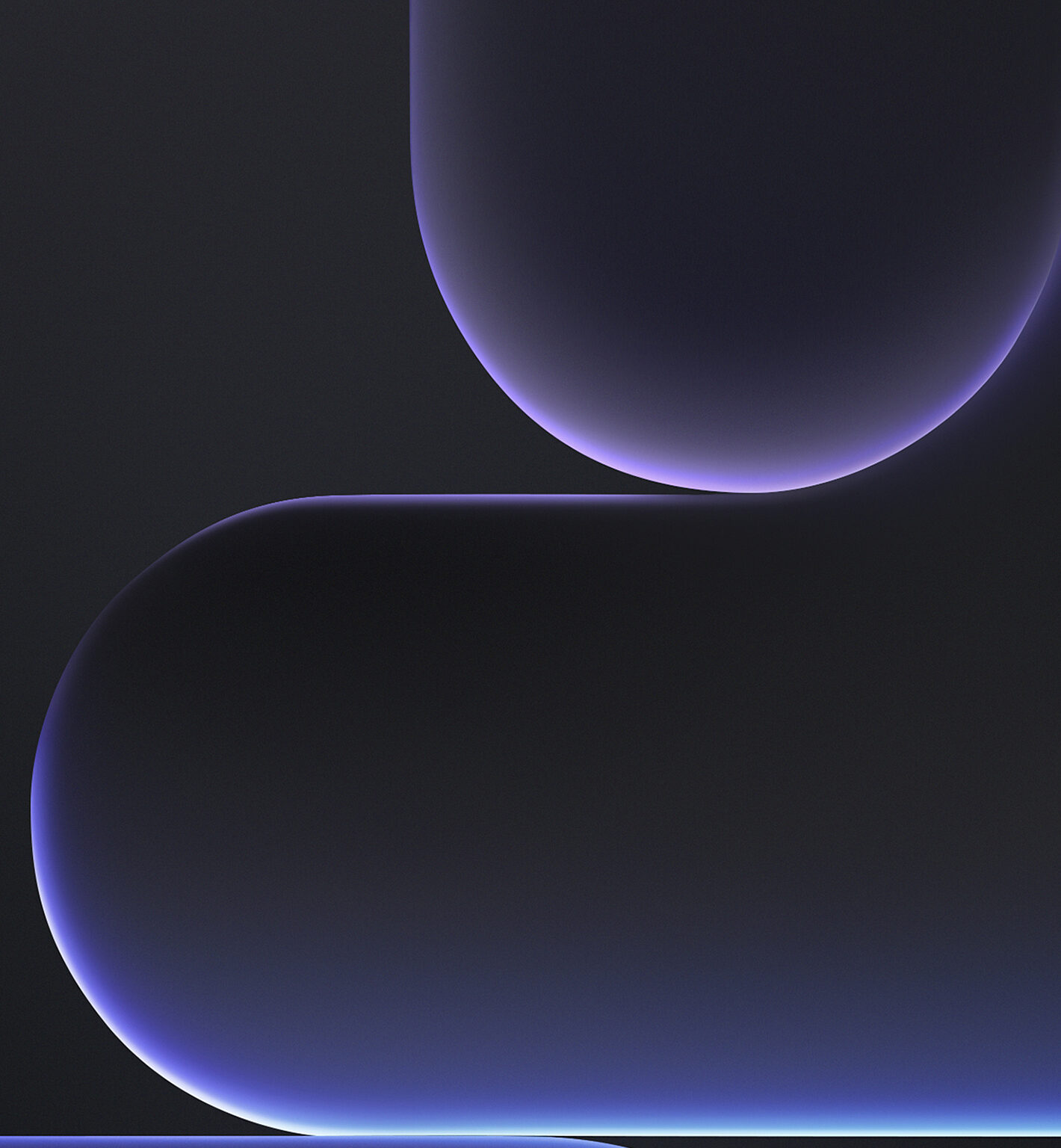 Dark, rounded shapes are arranged vertically against a black background. A subtle blue glow highlights the edges of the forms, creating a se…