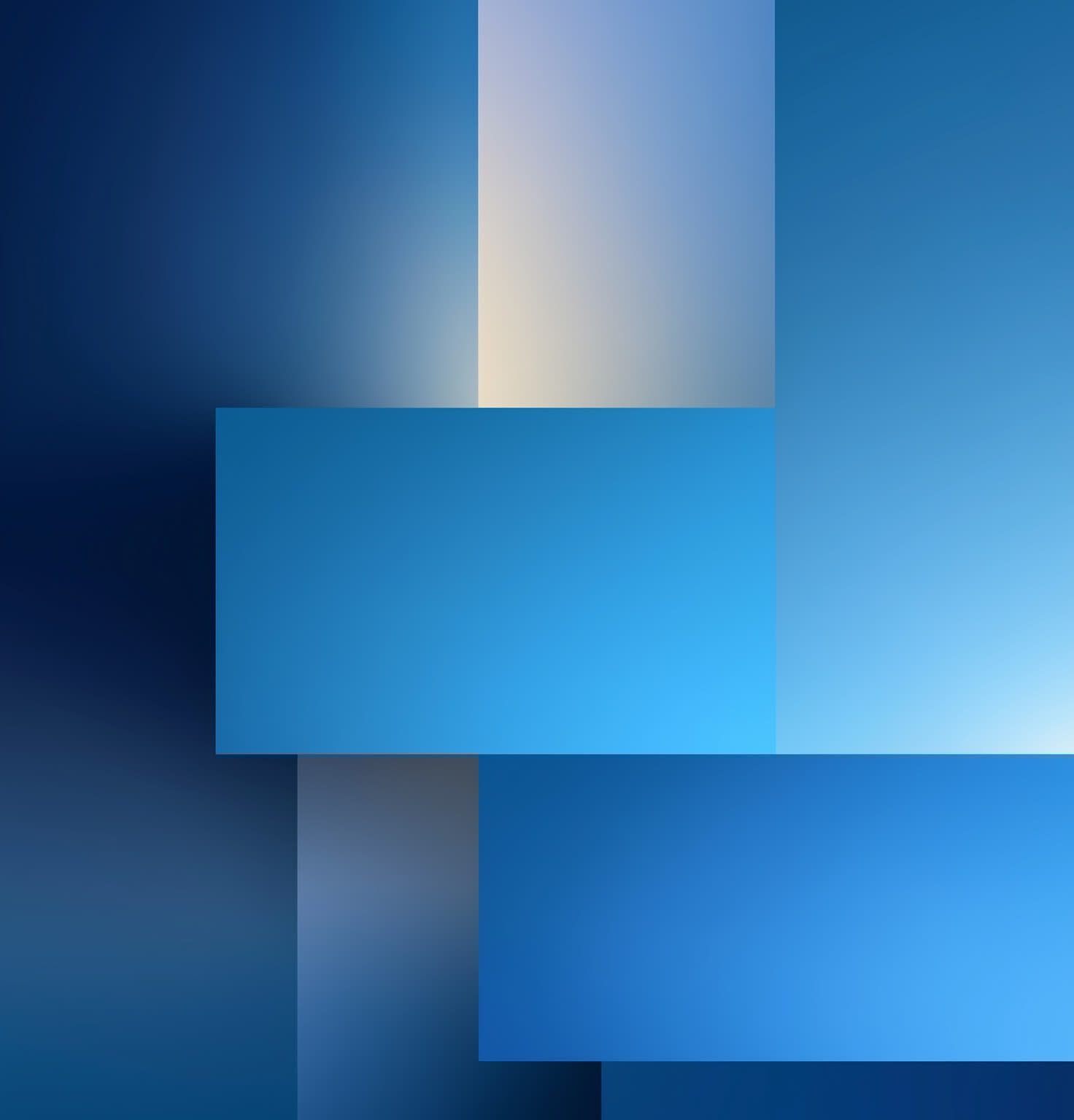 Overlapping rectangular shapes fill the frame in varying shades of blue. A subtle gradient effect creates a sense of depth with lighter tones toward the center.