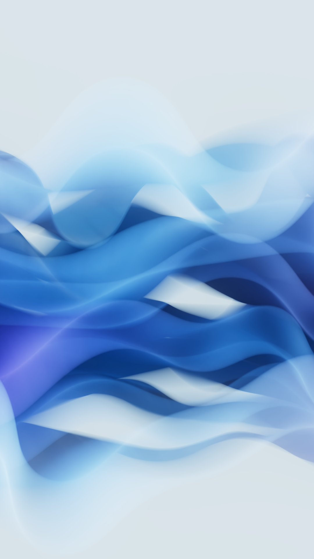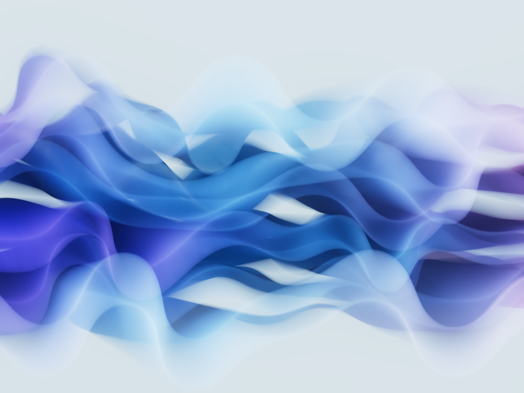 Flowing waves of cobalt blue, soft cyan, and lavender purple blend together in smooth gradients against a pale gray background. For 4K monit