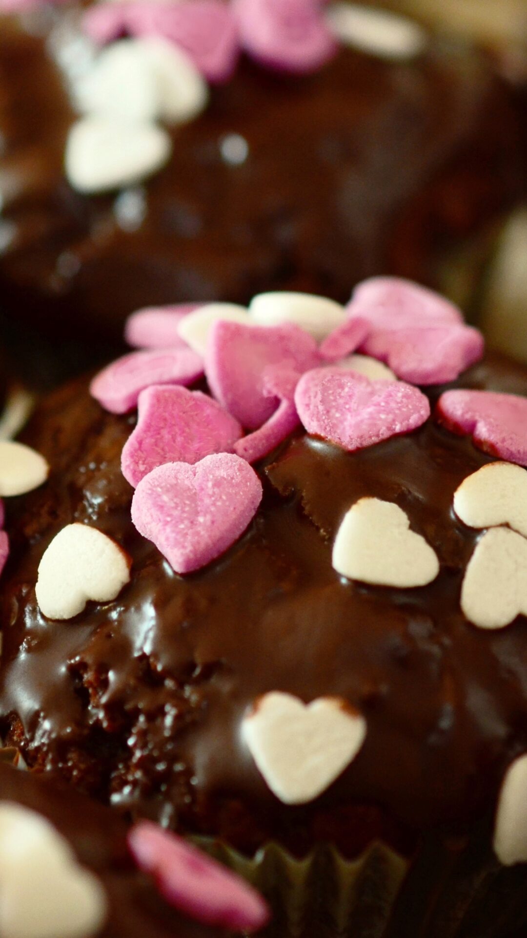 Chocolate Cupcakes | Pink Hearts Desktop Treat wallpaper 4K