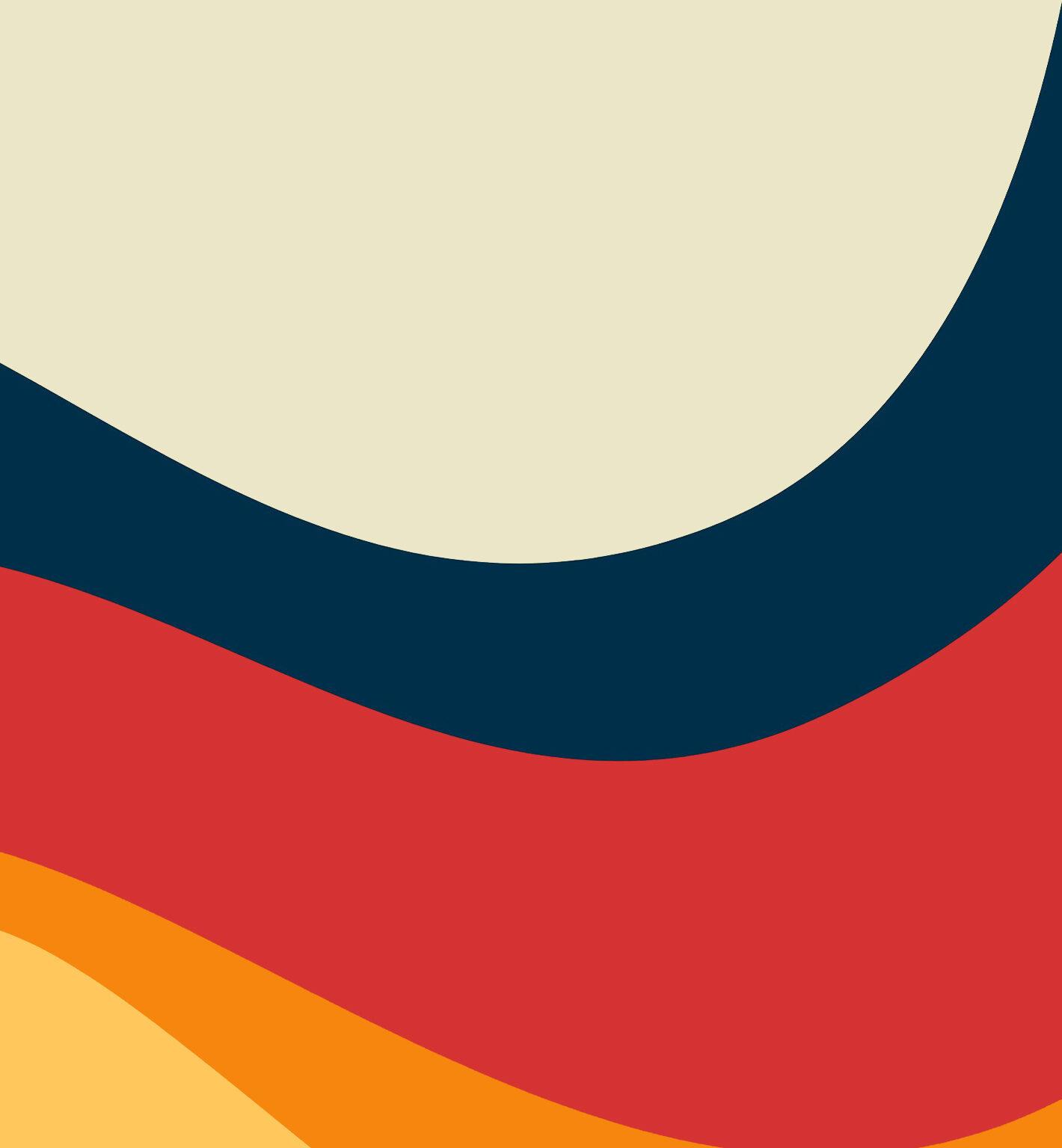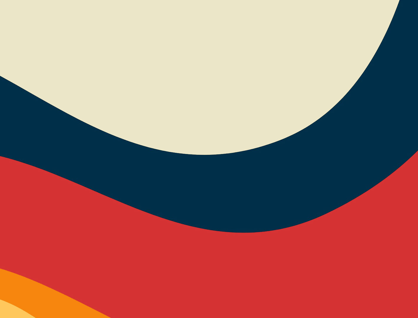 Stacked curved shapes fill the frame with blocks of warm and cool colors. The flat design and bold arrangement create a defined contrast bet