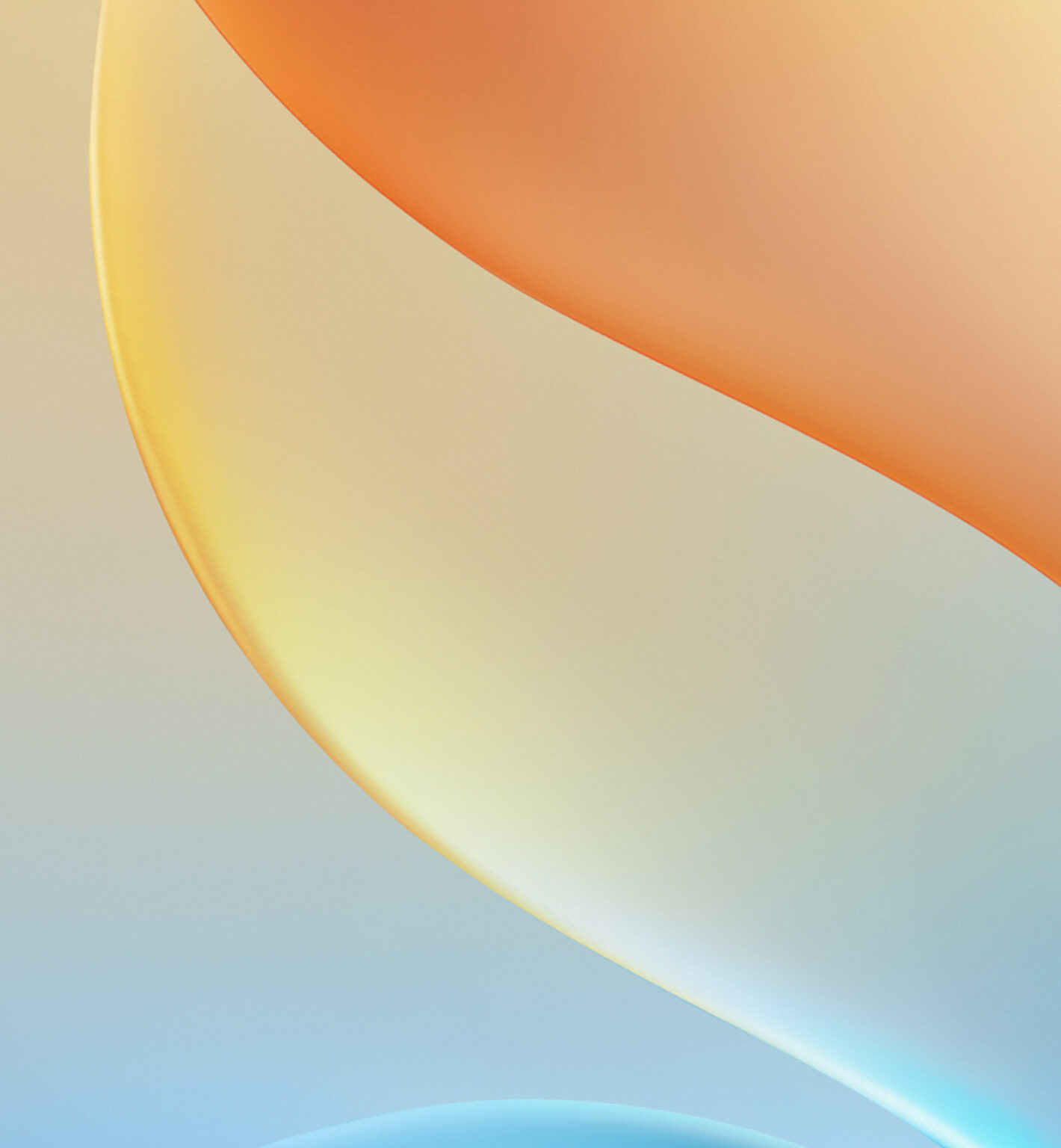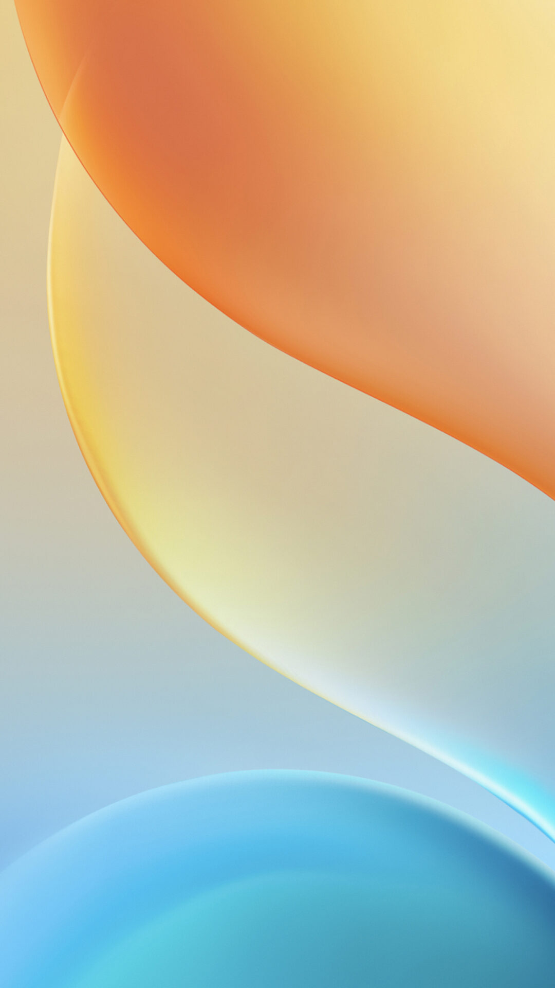 Overlapping rounded shapes in orange, yellow, and blue fill the frame. The colors blend softly with a blurred, diffused light creating a smo…