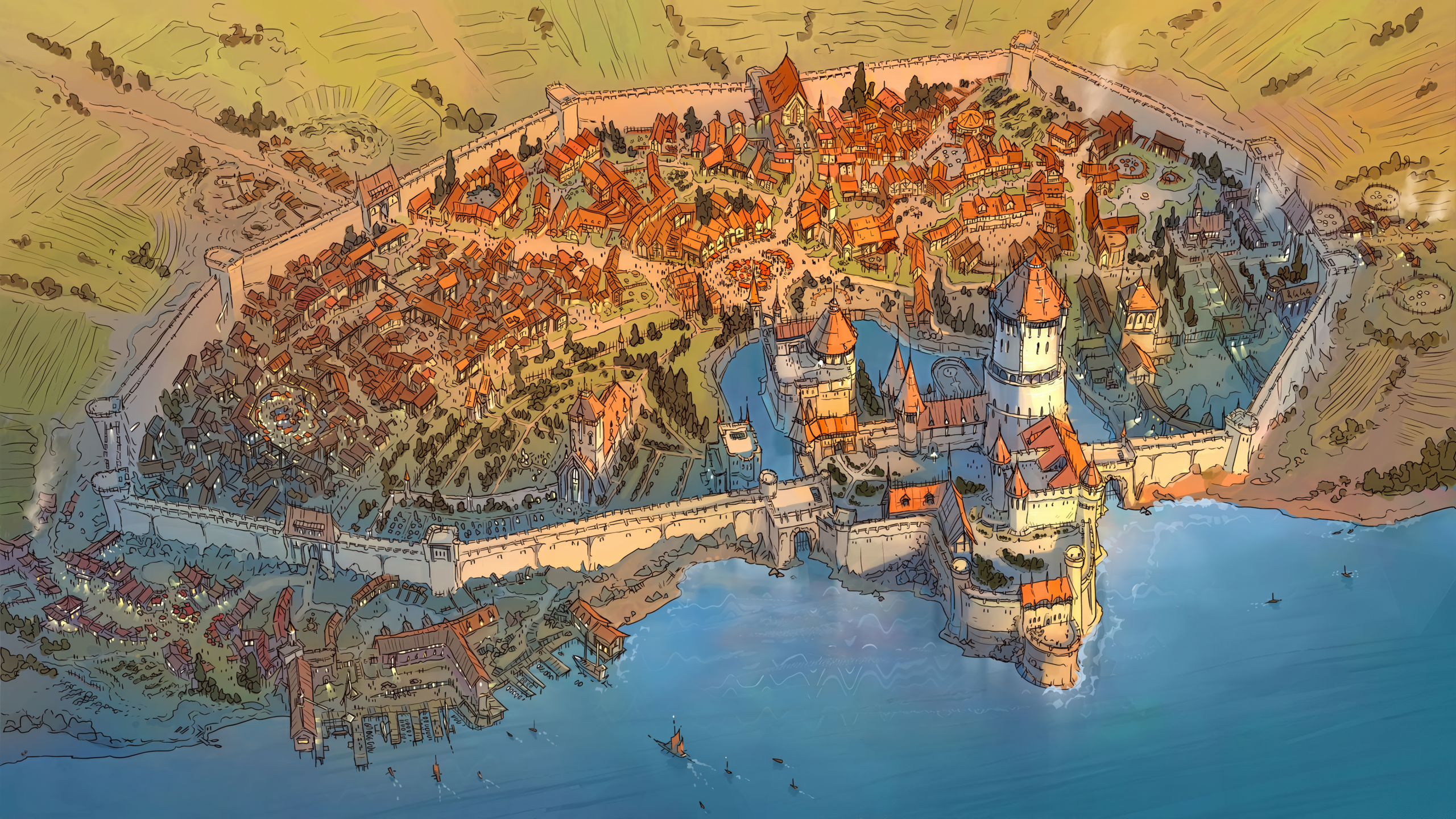 A modern interior shows a hallway with glass partition walls tinted in various colors, leading to an outdoor view. Light filters through the glass, casting warm gradients and reflections onto the wood flooring and neutral walls.