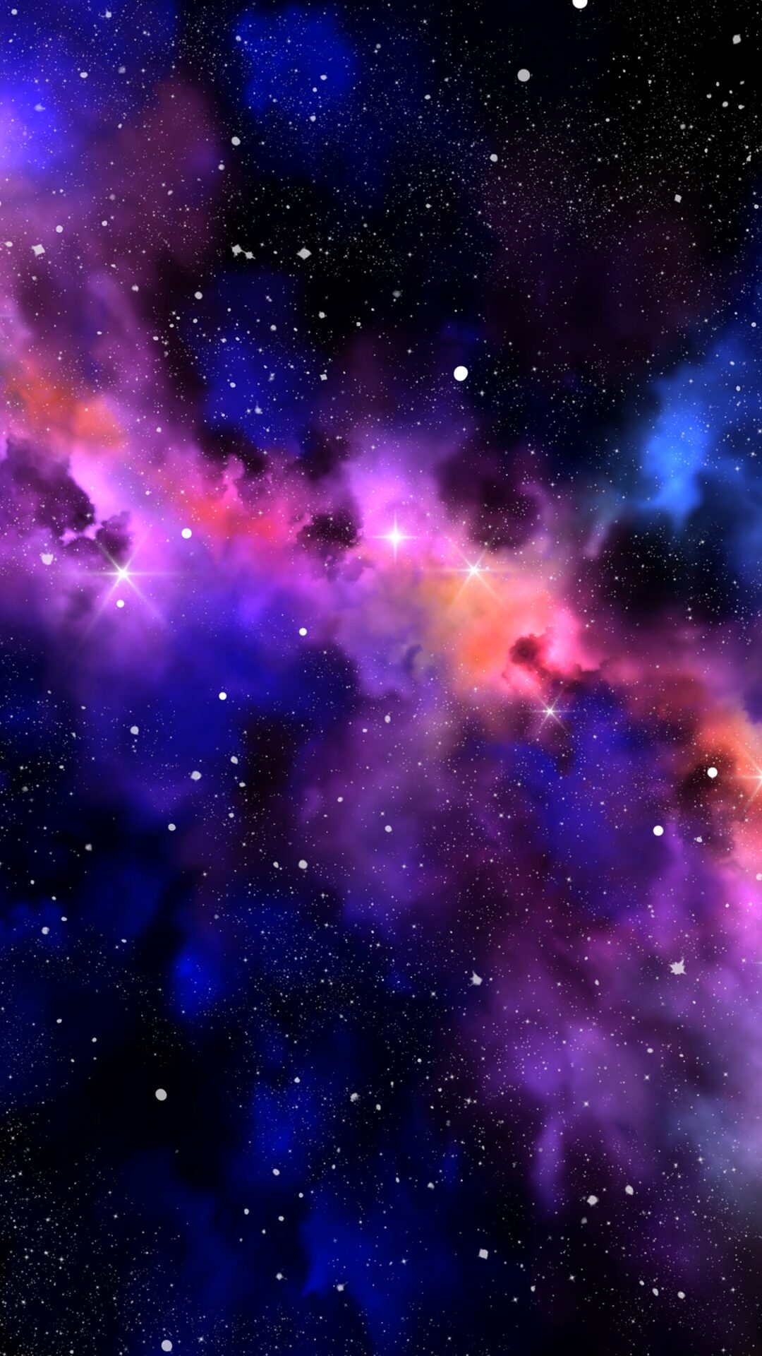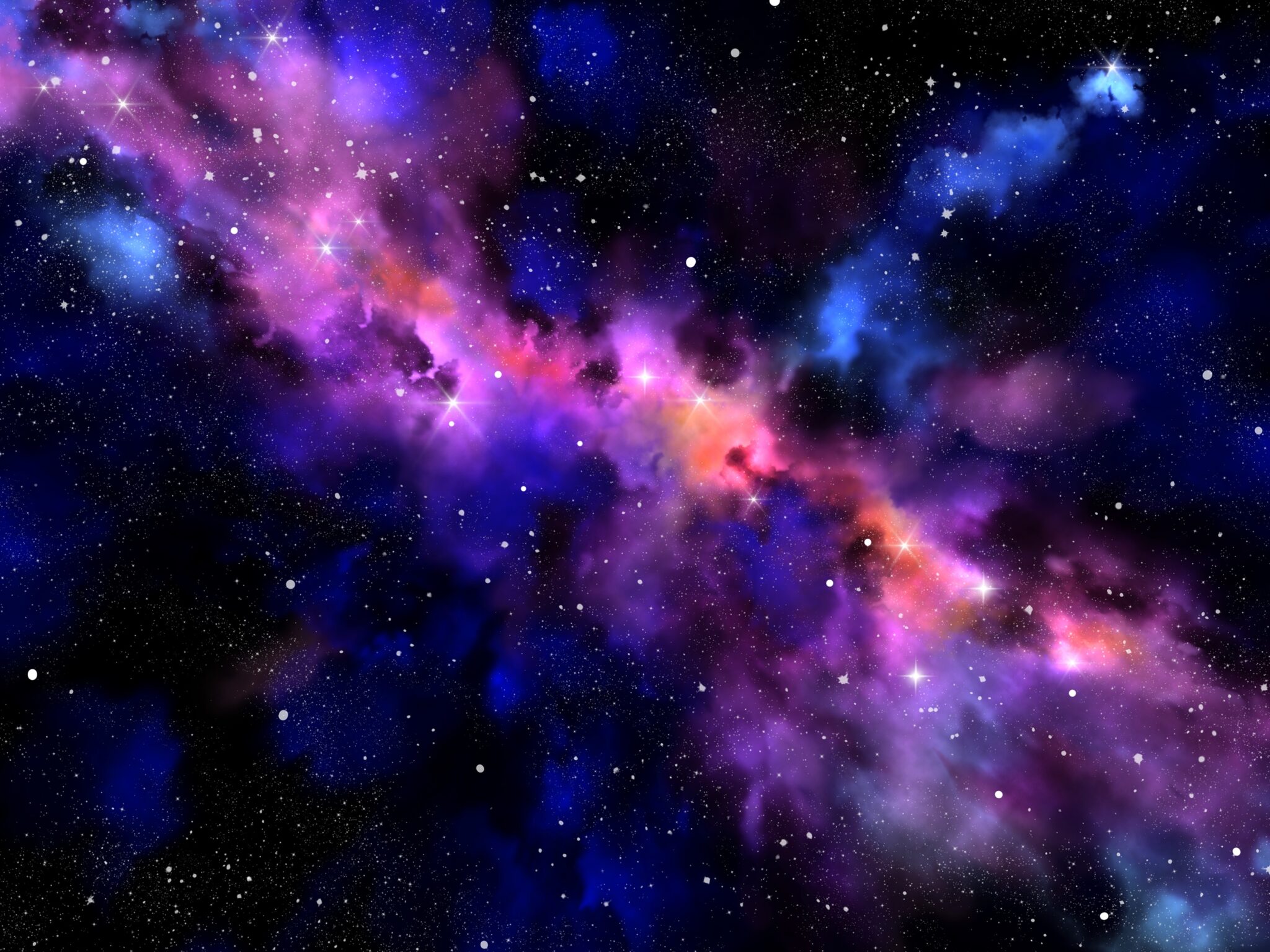 Vibrant cosmic clouds swirl in brilliant shades of pink, purple, and blue against the star-filled darkness of deep space. This colorful nebu…