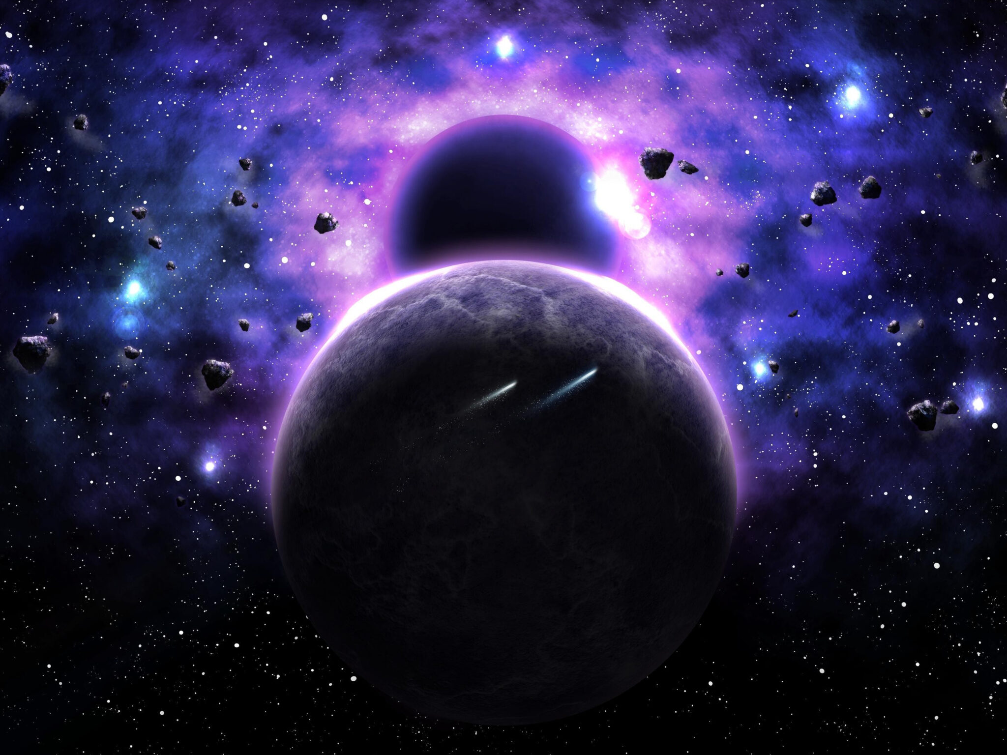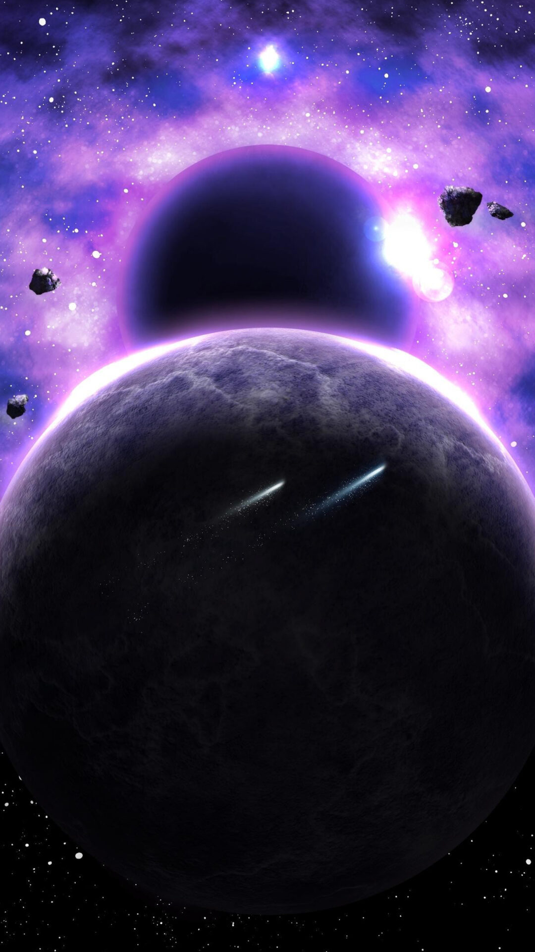 Cratered Planet Purple Nebula Asteroid Field Desktop Wallpaper 4K