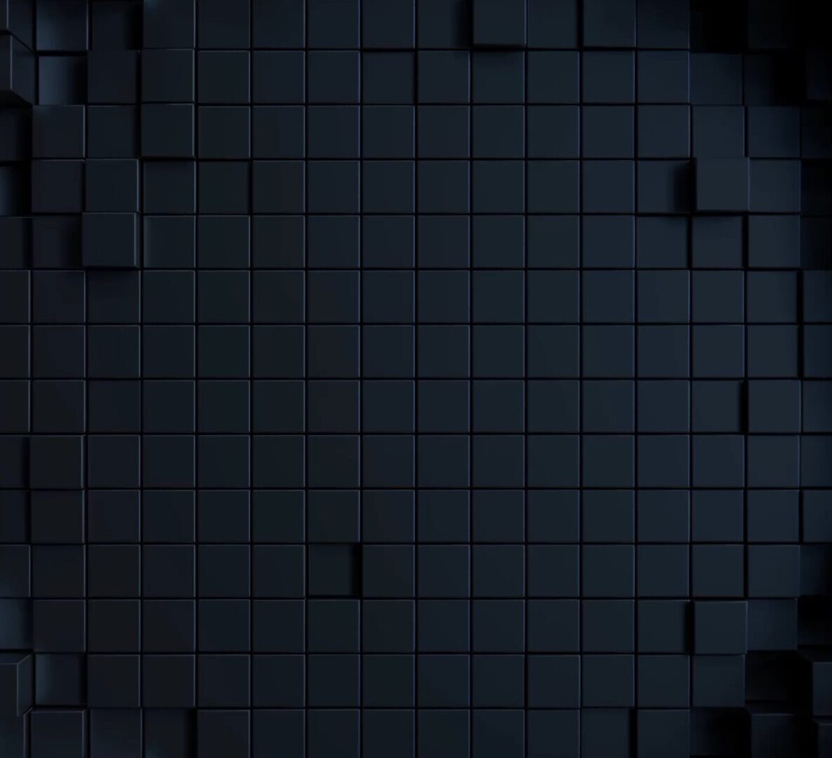 The composition shows a dense arrangement of dark blue cubes extending vertically and horizontally. Subtle variations in shadow create a sen