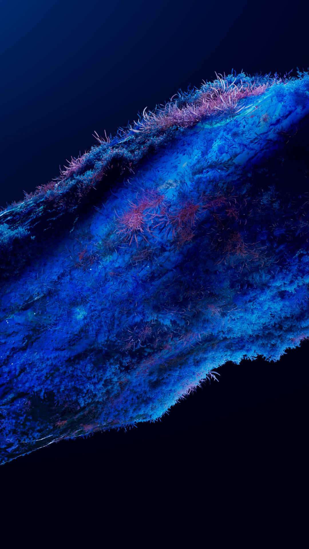 Deep electric blues and hints of purple-pink create this organic floating form that looks like something between a deep sea creature and a cosmic nebula. For 4K monitors, this abstract piece brings a moody, mysterious vibe to your desktop.
