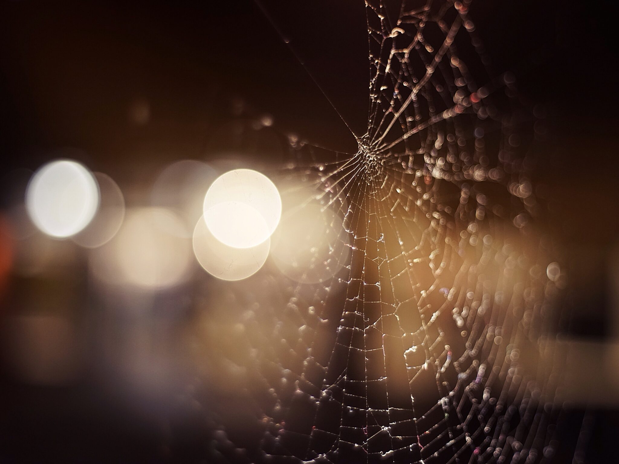 Dew-Covered Spiderweb Night Bokeh City Lights Desktop Wallpape…