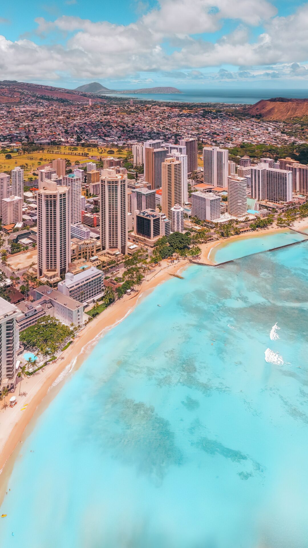 Diamond Head Coastal City | Turquoise Beach View Desktop wallpaper 4K
