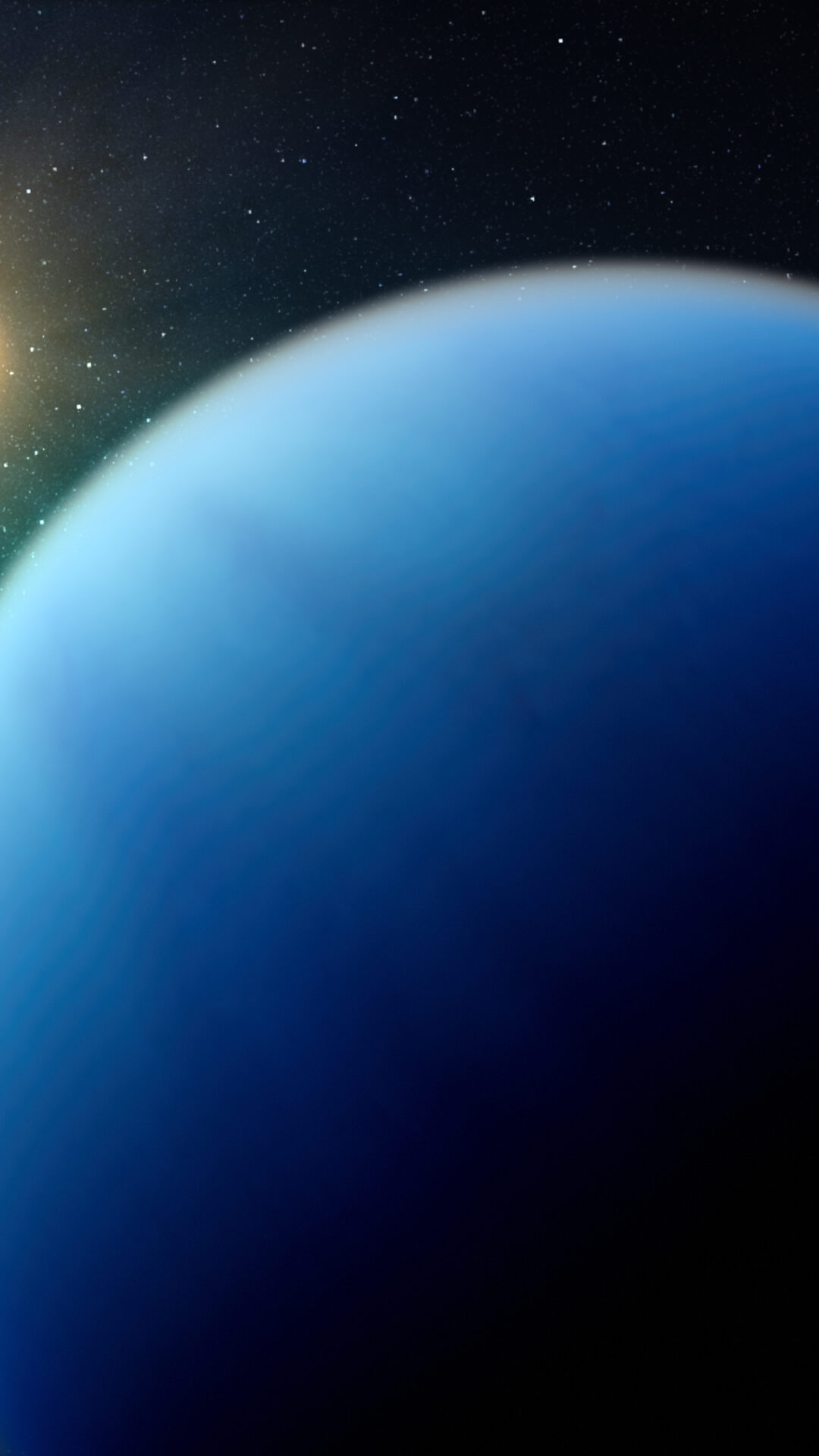 Deep blue exoplanet floats in the starry void while its distant yellow sun casts a gentle glow across the cosmic darkness. Works beautifully for 4K monitors when you want that mysterious space exploration vibe on your desktop.