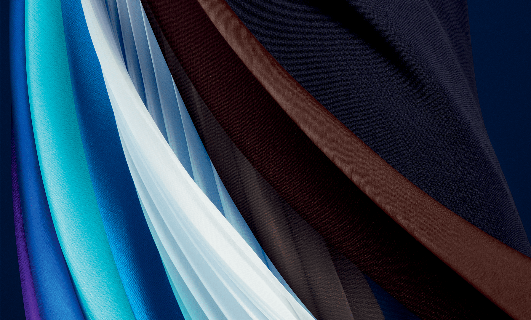 Swirls of color create a dynamic, layered composition that fills the frame. The glossy surfaces reflect light, highlighting the gradient transition from deep blues to warm browns.