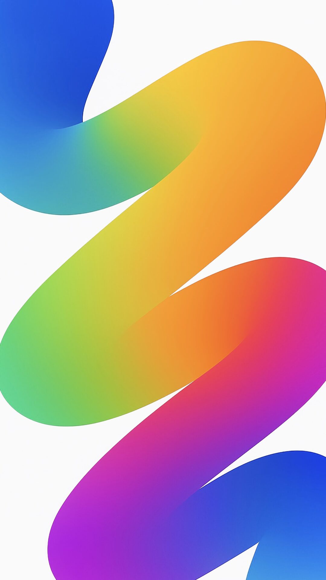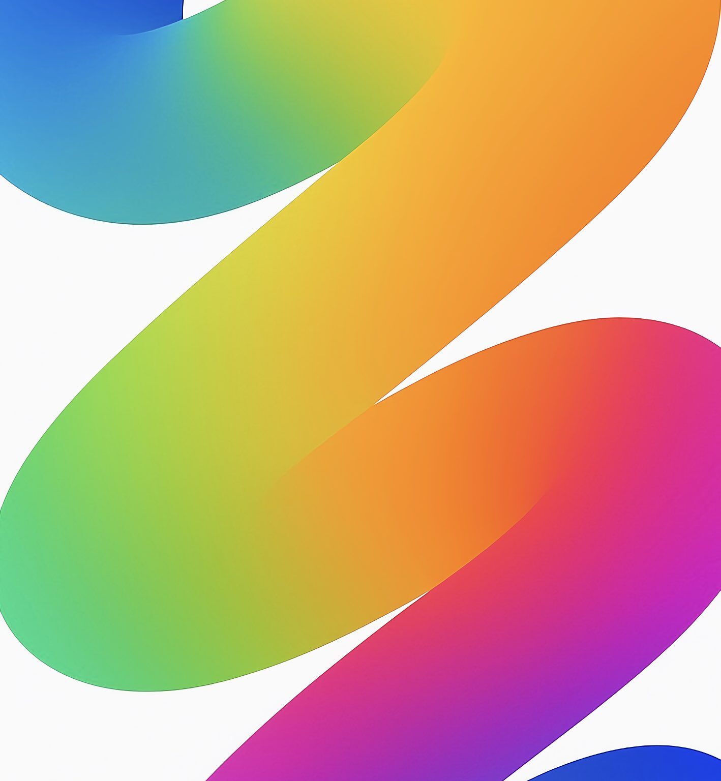 Abstract shapes in a rainbow spectrum flow vertically against a white background. Smooth gradients blend from blue to orange, green, pink, a