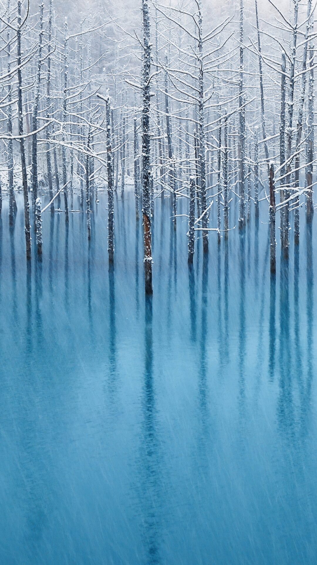 Frozen Trees Blue Water | Winter Calm Desktop wallpaper 4K