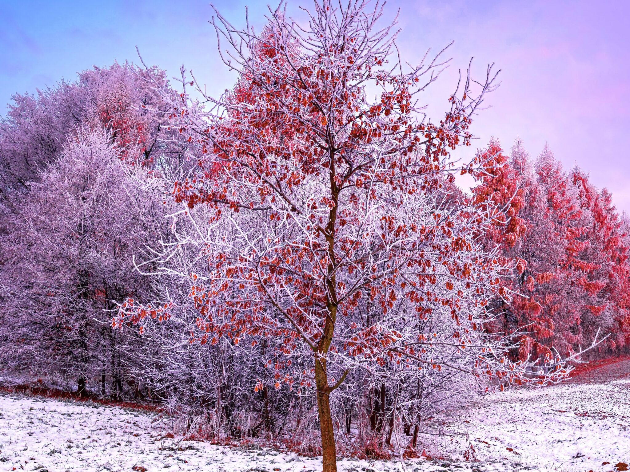 Frozen Winter Field Desktop | Snowy Tree Branches wallpaper 4K