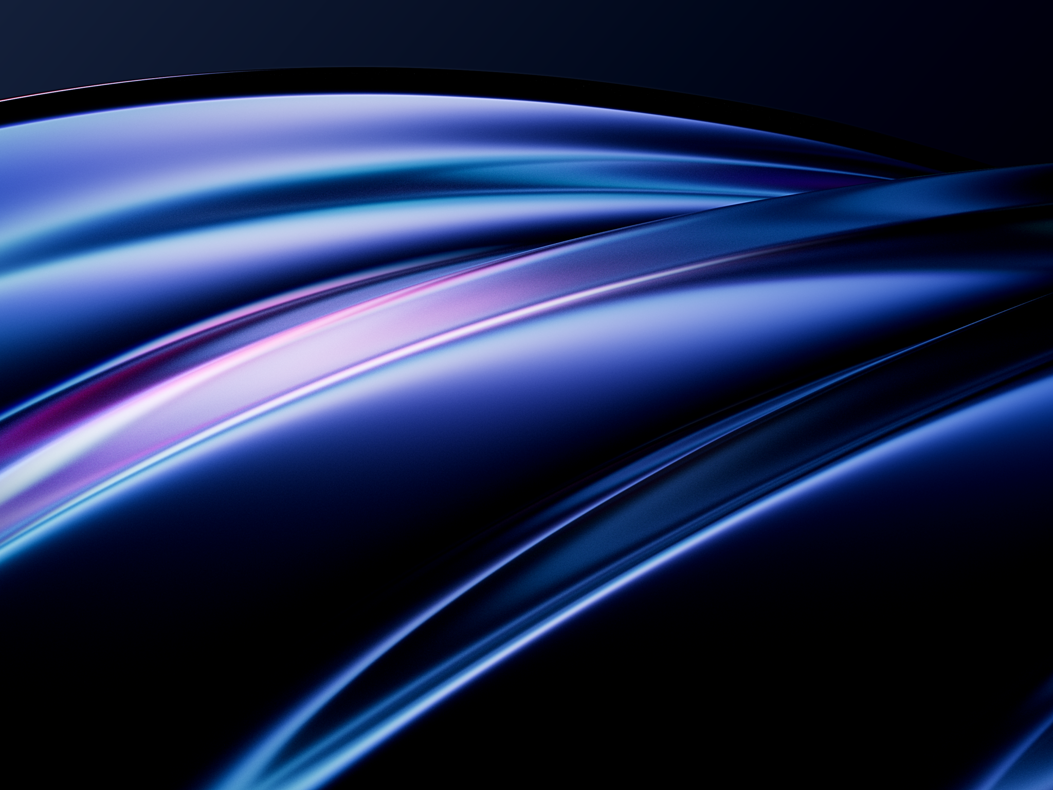 Smooth flowing curves in deep sapphire and cobalt blue with hints of magenta and pink catching the light against a dark background. For 4K monitors, this abstract wallpaper brings a sleek modern vibe to your desktop.