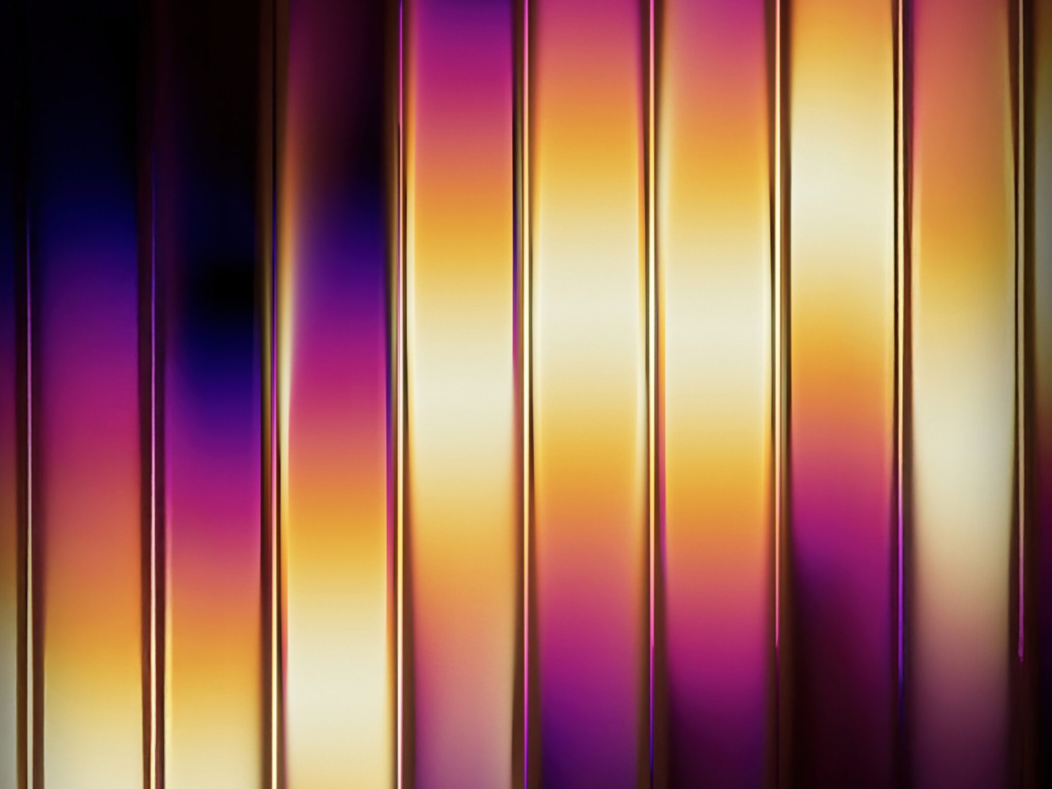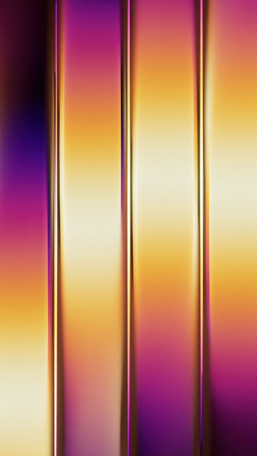 Glossy vertical stripes shift from deep purple and blue on the left through warm gold and orange tones in the center, giving off a sleek met
