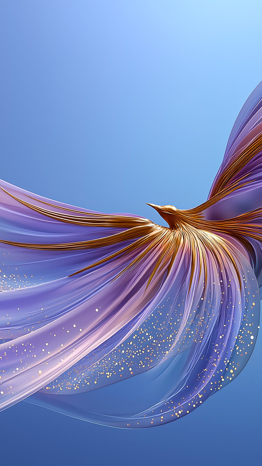 Golden Bird Amid Purple Sparkles wallpaper 4K