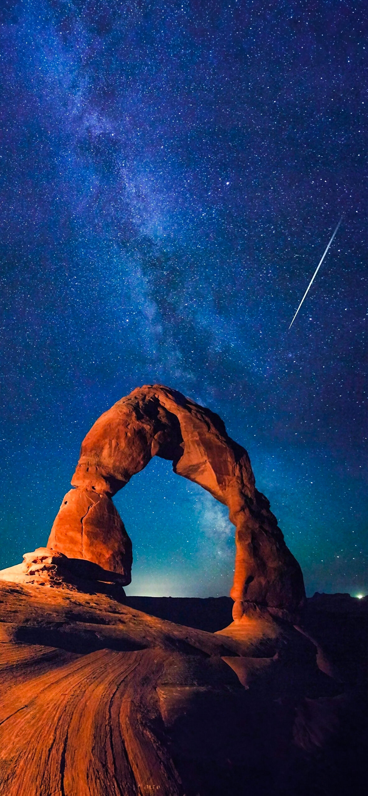 A rocky coastline meets dark water under a cloudy sky, forming a steep incline. The light reflects off the rock face, revealing layered text…
