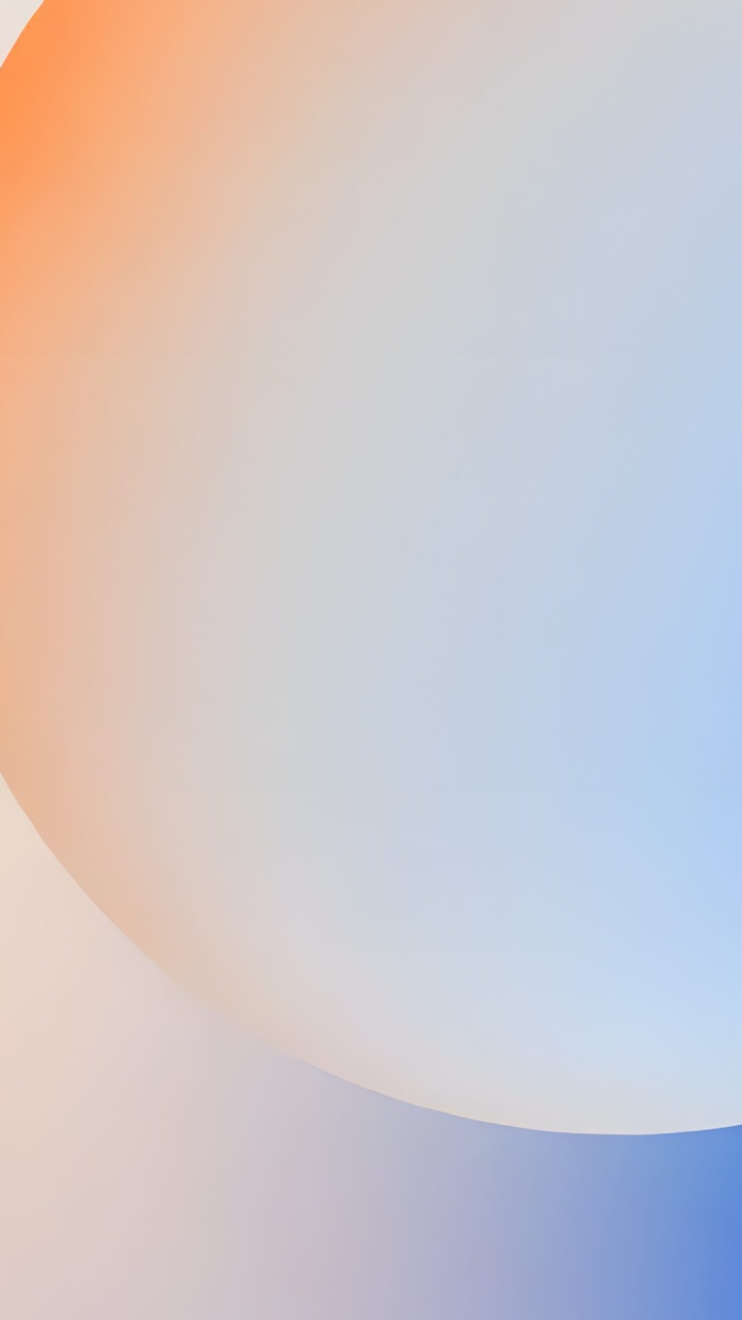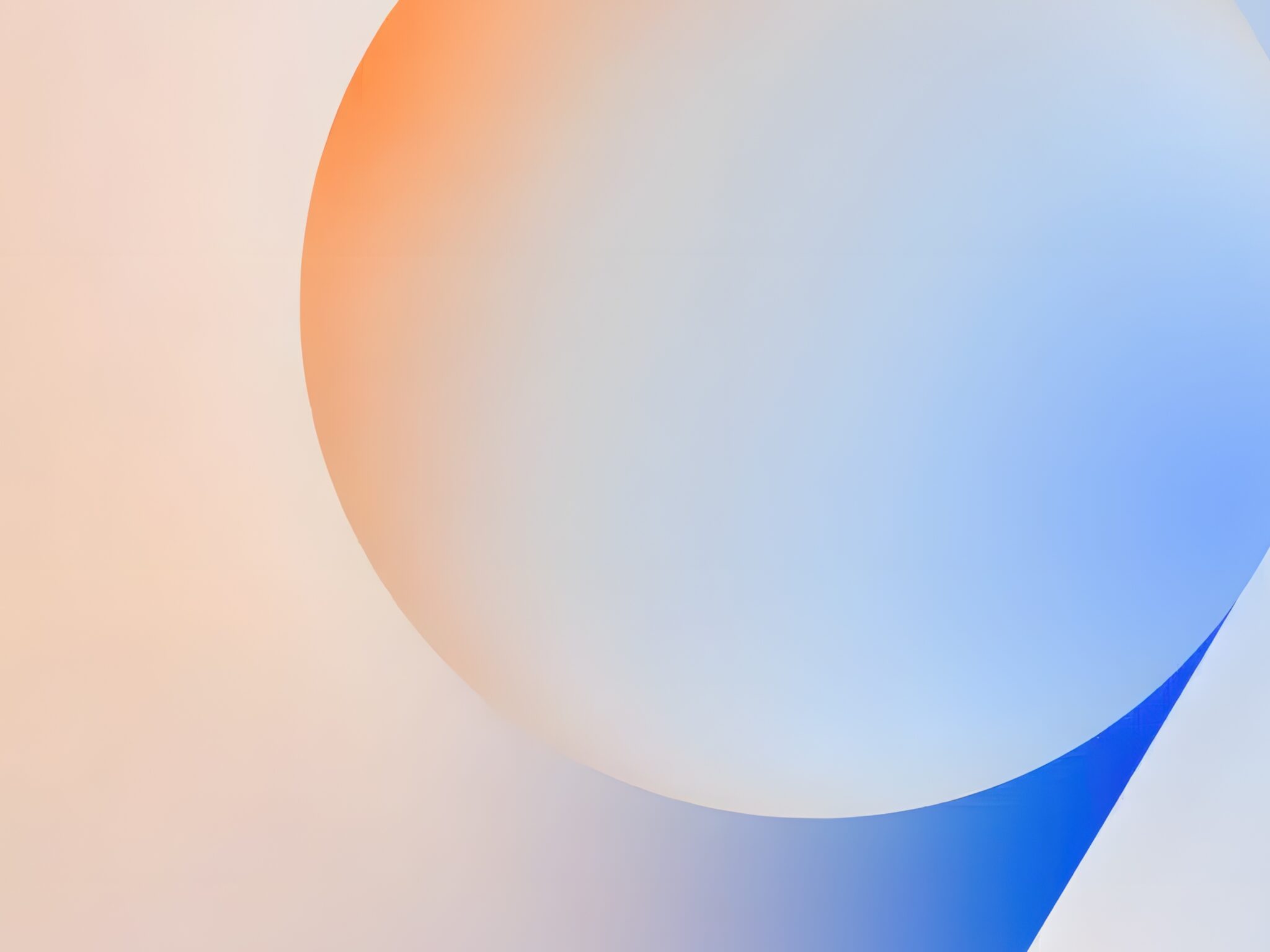 Soft gradient sphere floating against a dreamy peach and pale blue backdrop, with a deep cobalt accent cutting through the lower right. For