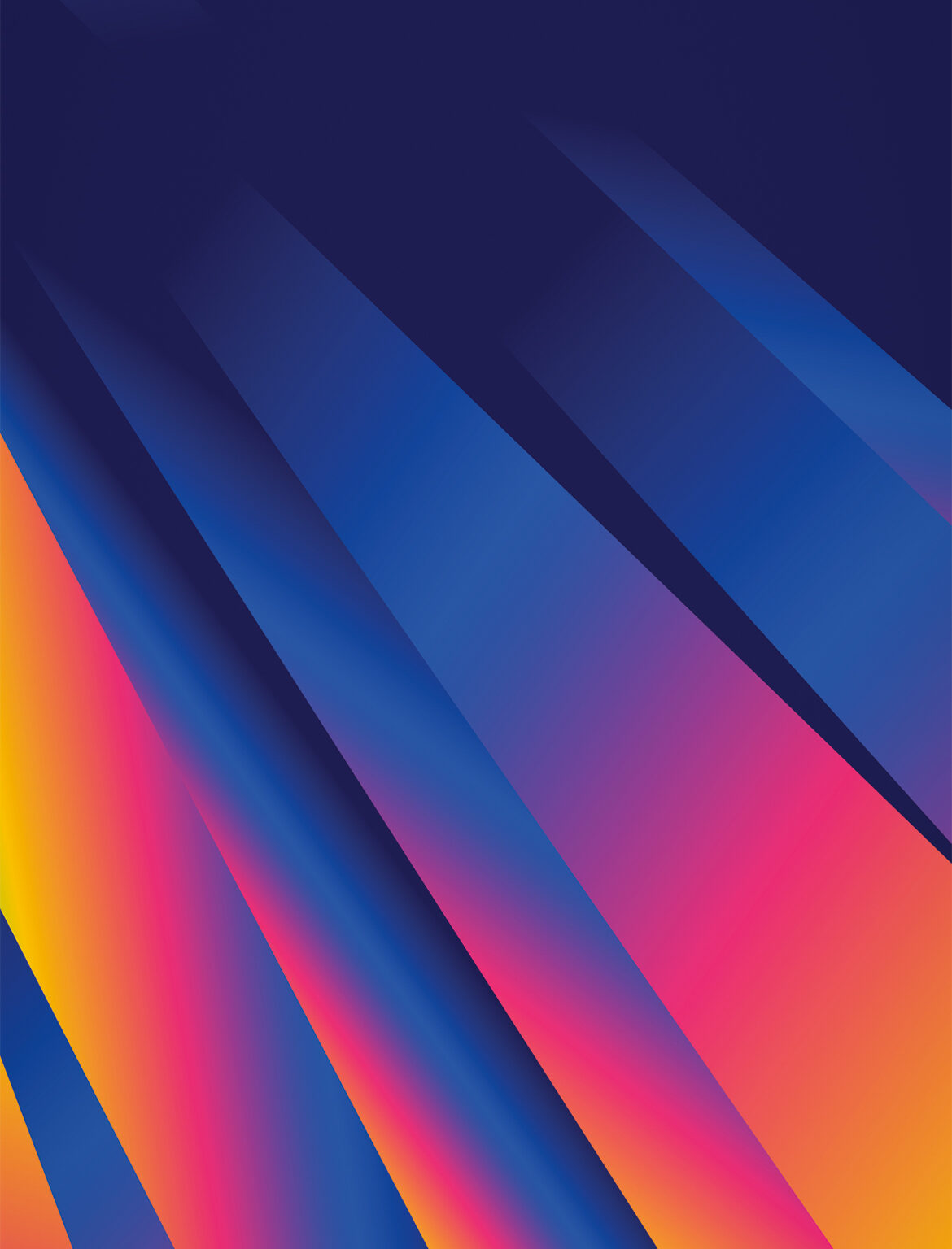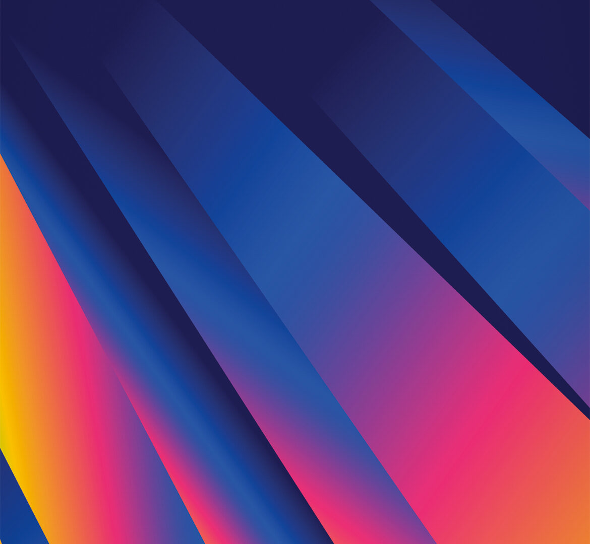 Angled stripes fill the frame with a flowing color gradient. Smooth transitions between blue, pink, orange, and yellow create a layered dept