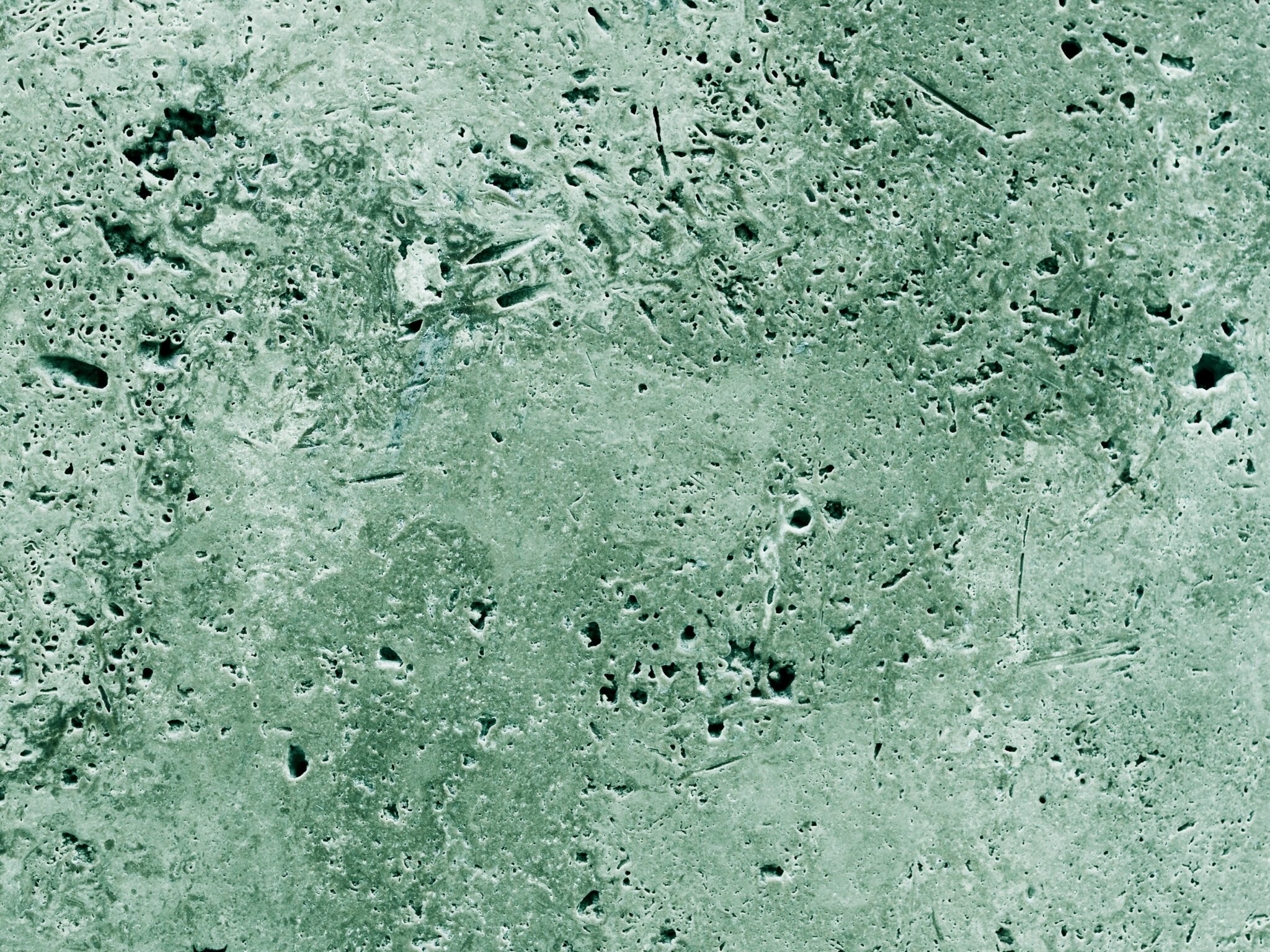 The full frame shows a close-up of a worn, green concrete surface. Small pits and cracks create a subtle depth and varied texture across the composition.