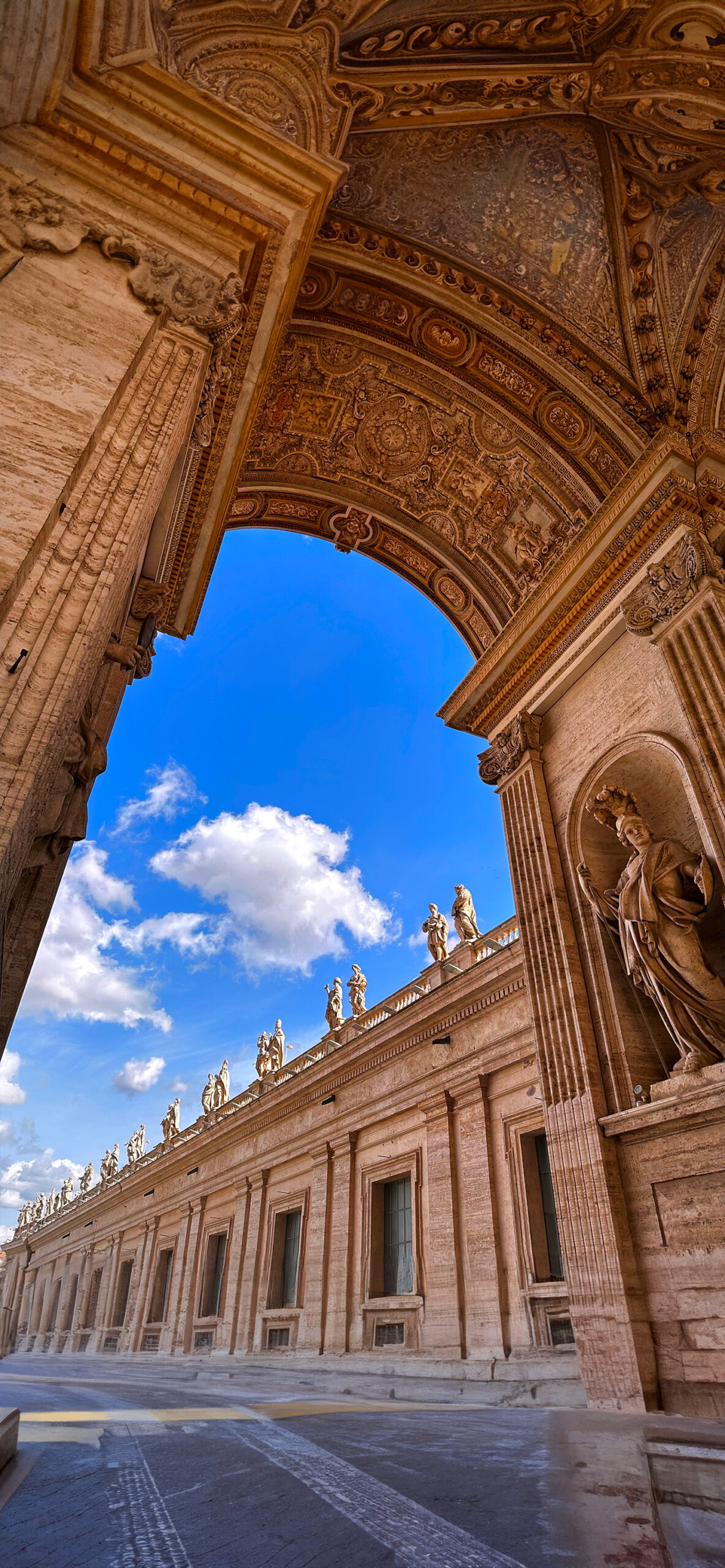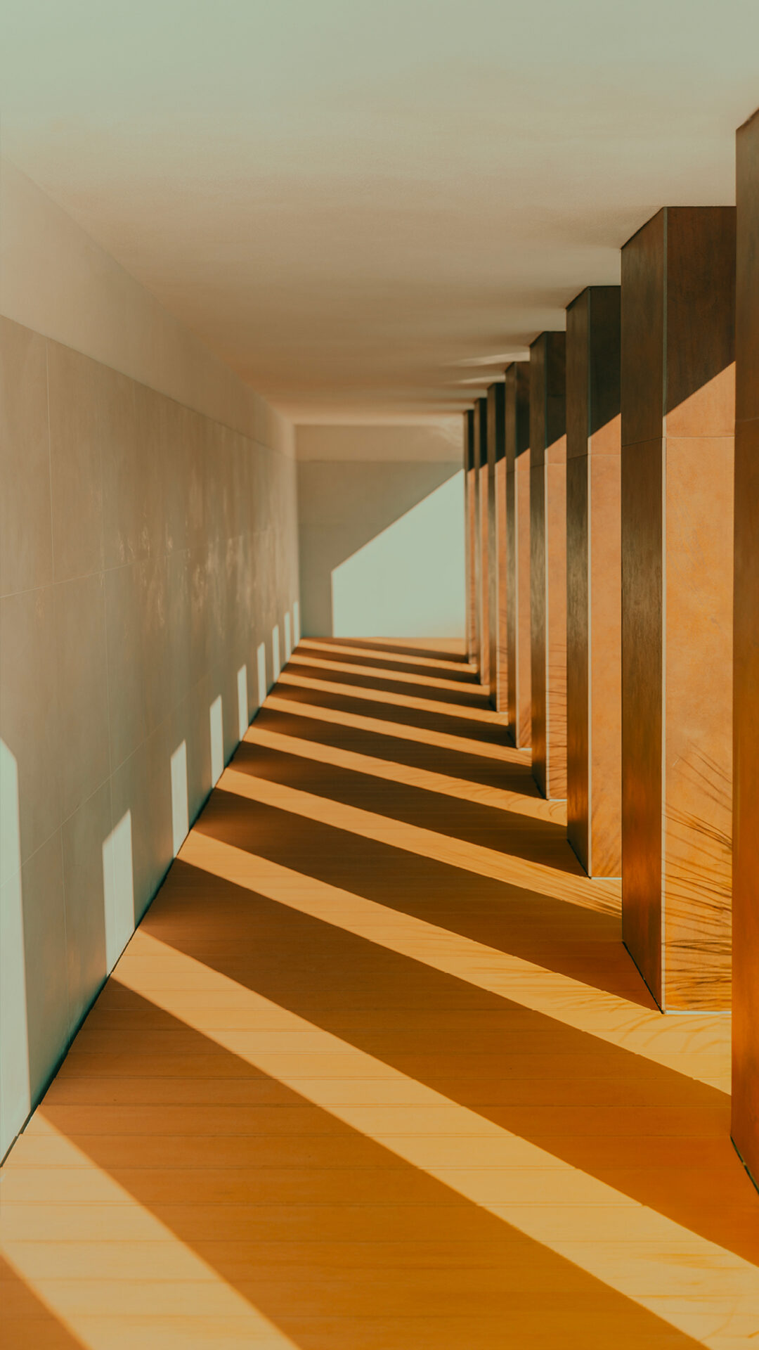 Hallway Wooden Columns iPhone | Light & Shadow Depth