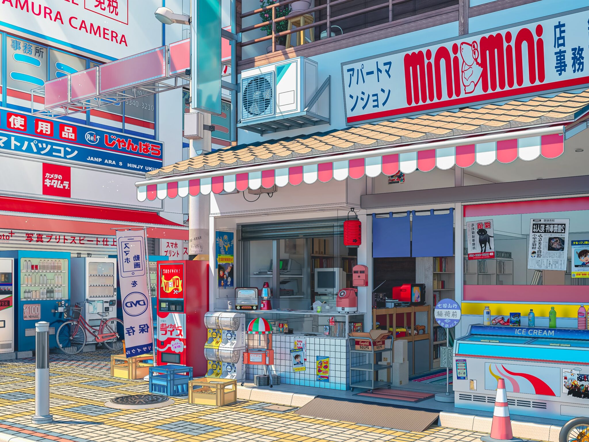 Japanese Mini Mart Storefront Desktop Wallpaper 4K