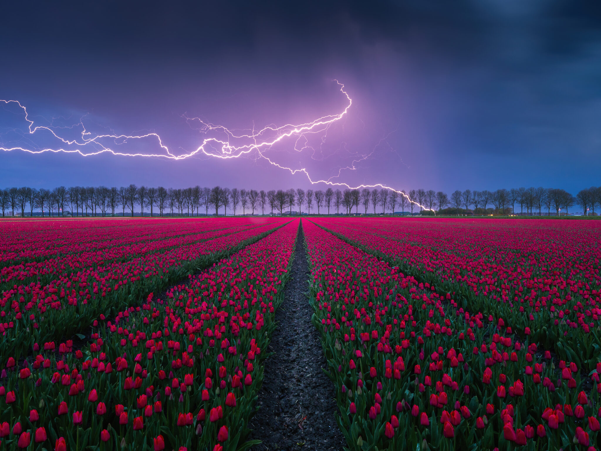 Lightning Strikes Over a Tulip Field