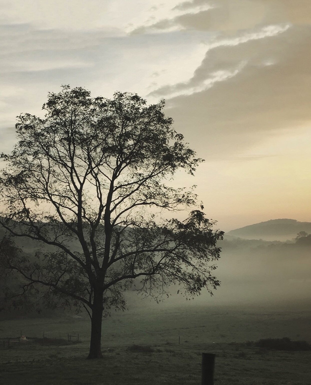 Lone Tree Misty Valley Dusk iPhone Wallpaper 4K wallpaper 4K