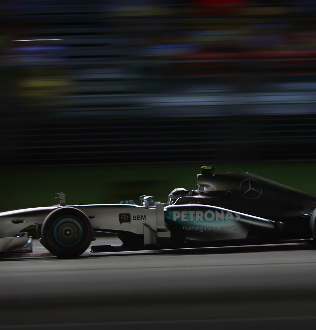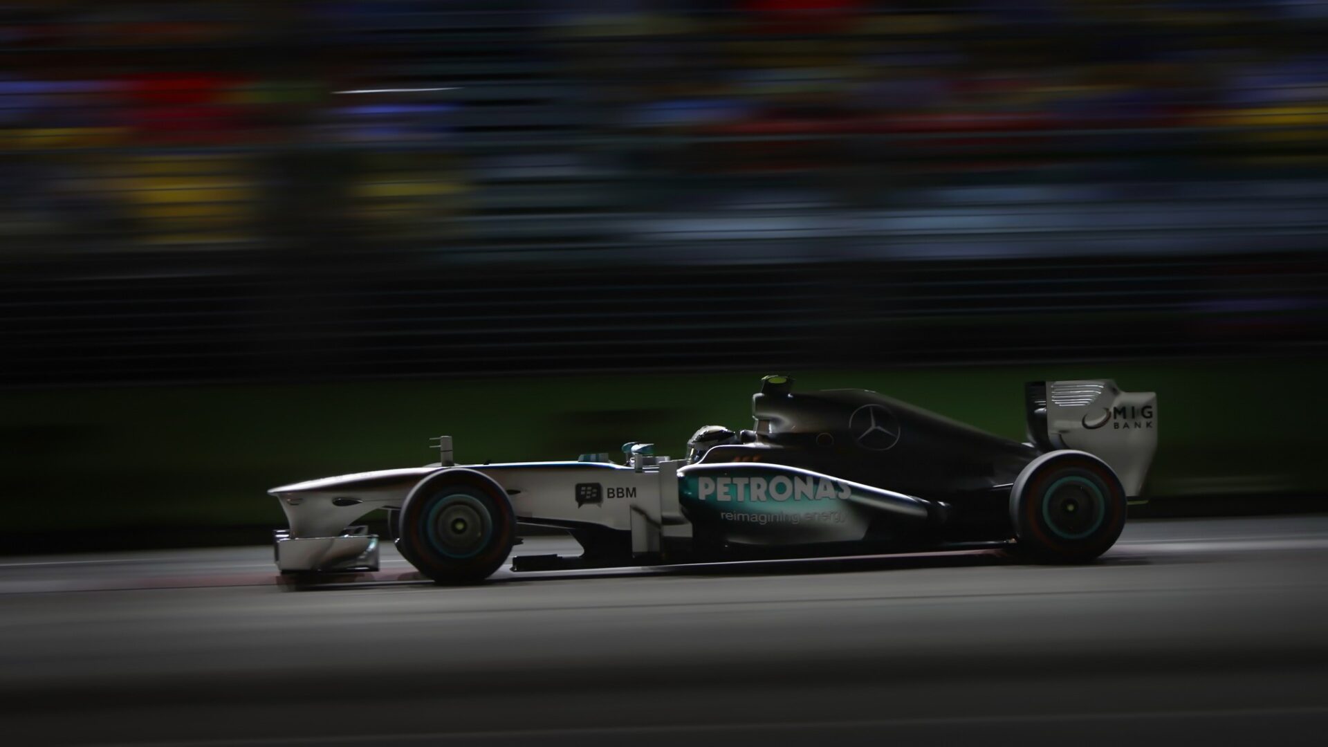 Mercedes-AMG Petronas F1 Night Panning Shot Desktop Wallpaper 4K