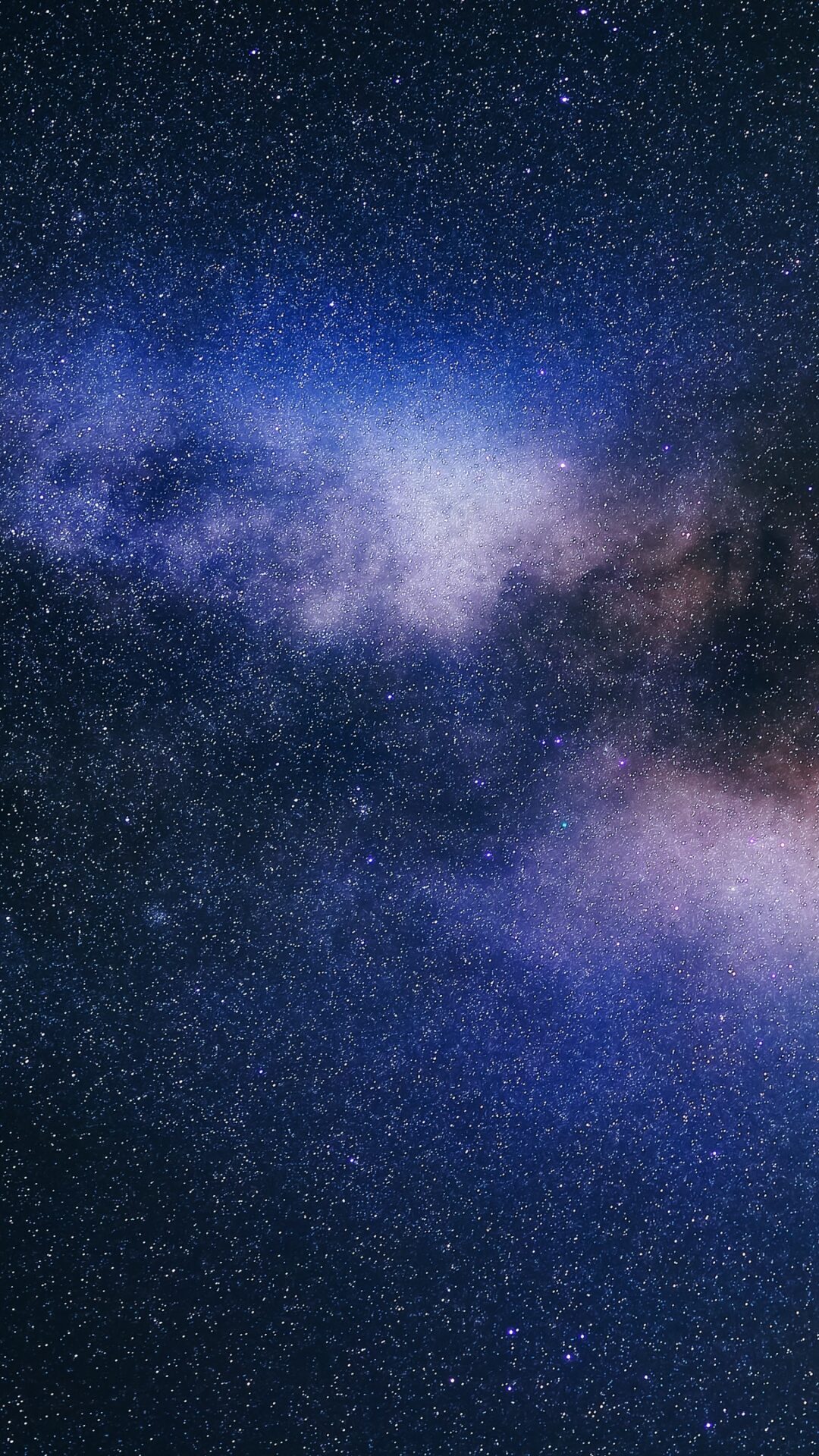 Cosmic clouds in deep purple and blue hues drift through a star-filled night sky, creating an otherworldly galaxy scene. This space wallpape…