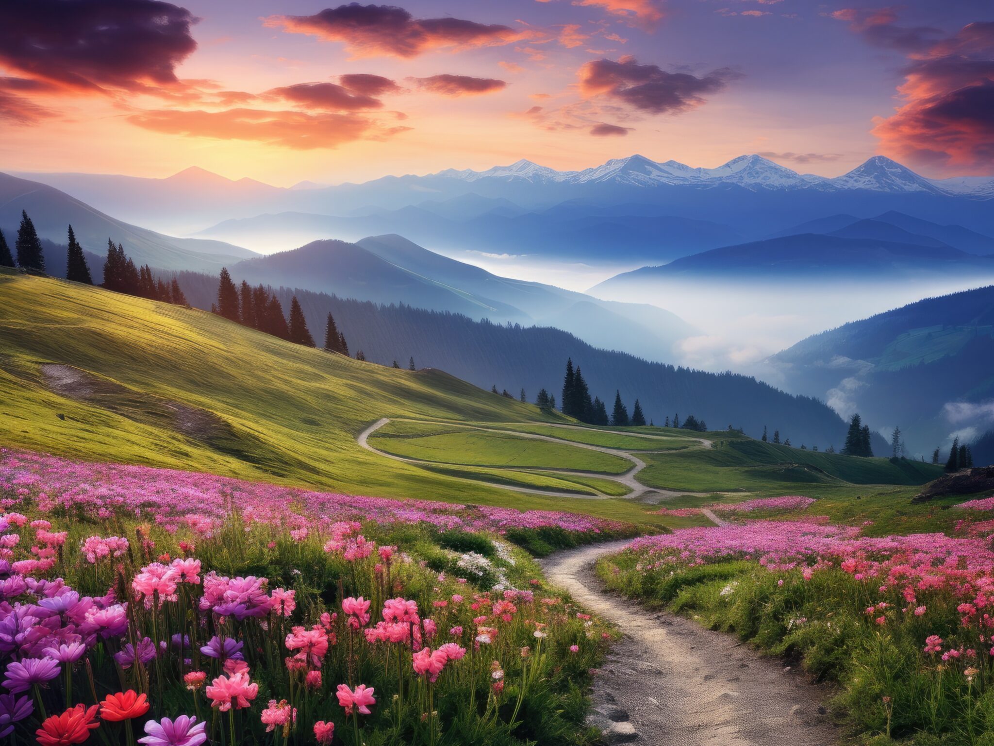 Mountain Meadow Path | Scenic Desktop View