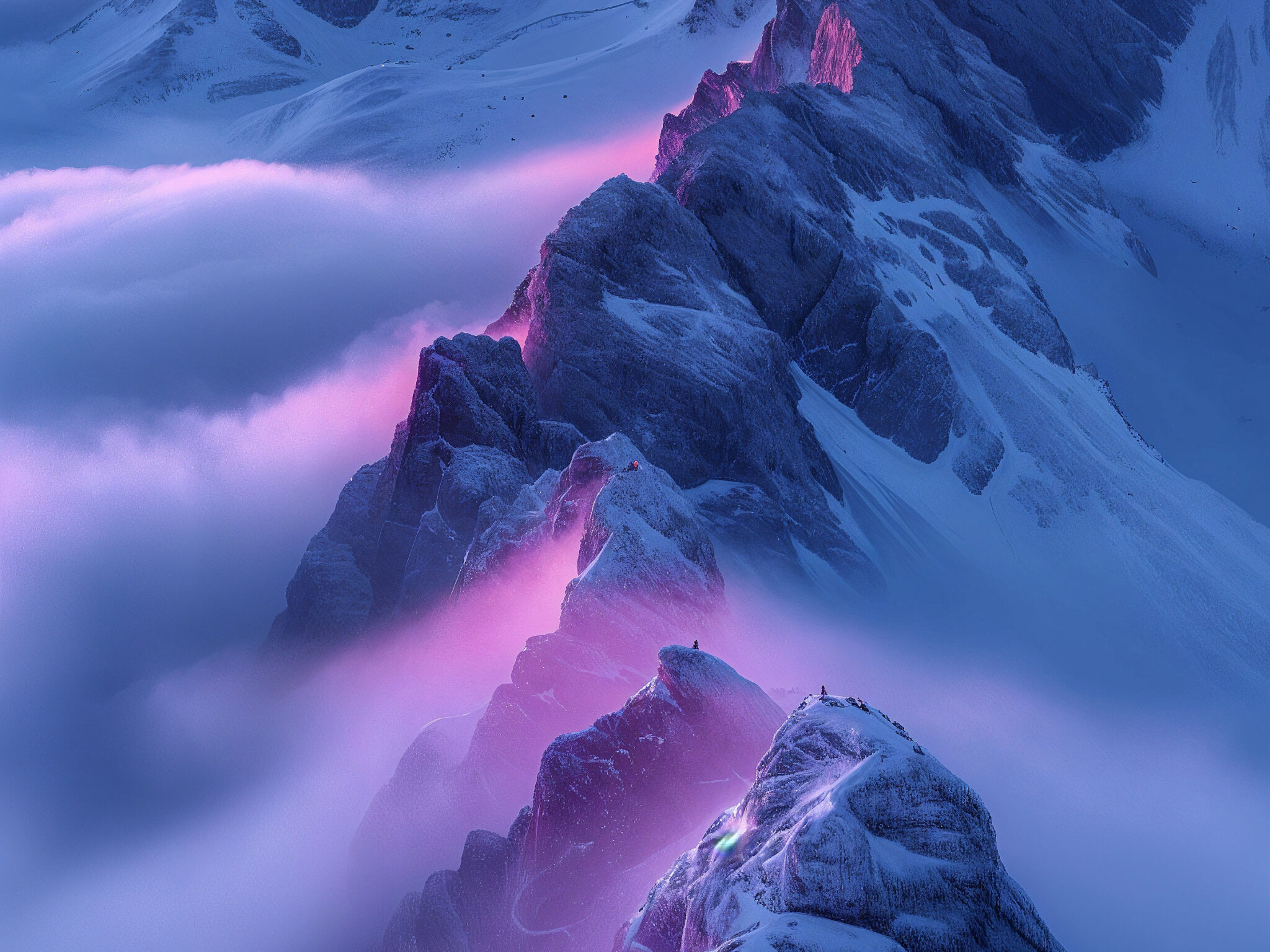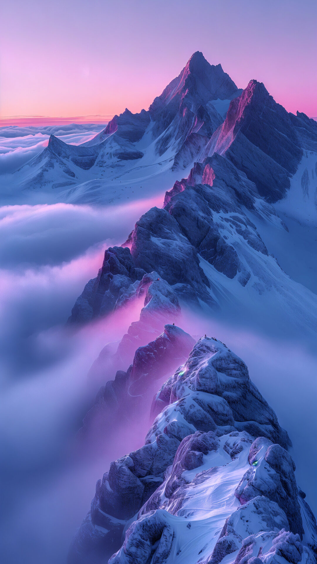 Mountain Peaks Cloud Sea iPhone | Pink Lavender Light wallpaper 4K