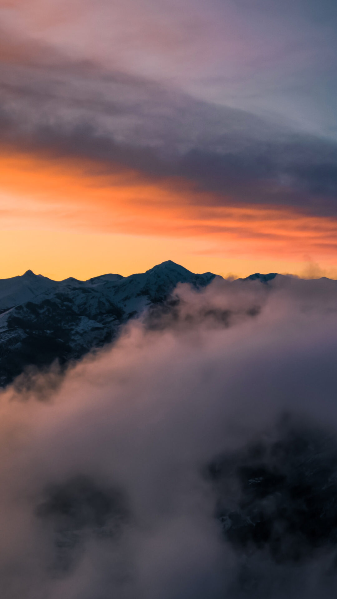 Mountain Sunset Clouds iPhone | Foggy Peak Panorama