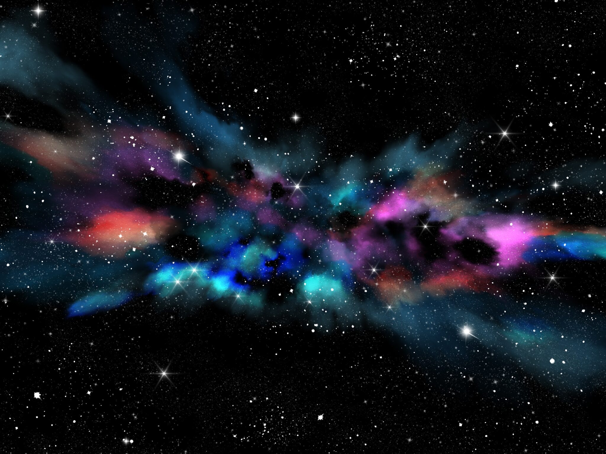 Vibrant nebula clouds in brilliant blues, purples, and pinks swirl dramatically across a star-filled galaxy against deep space. Made for des…