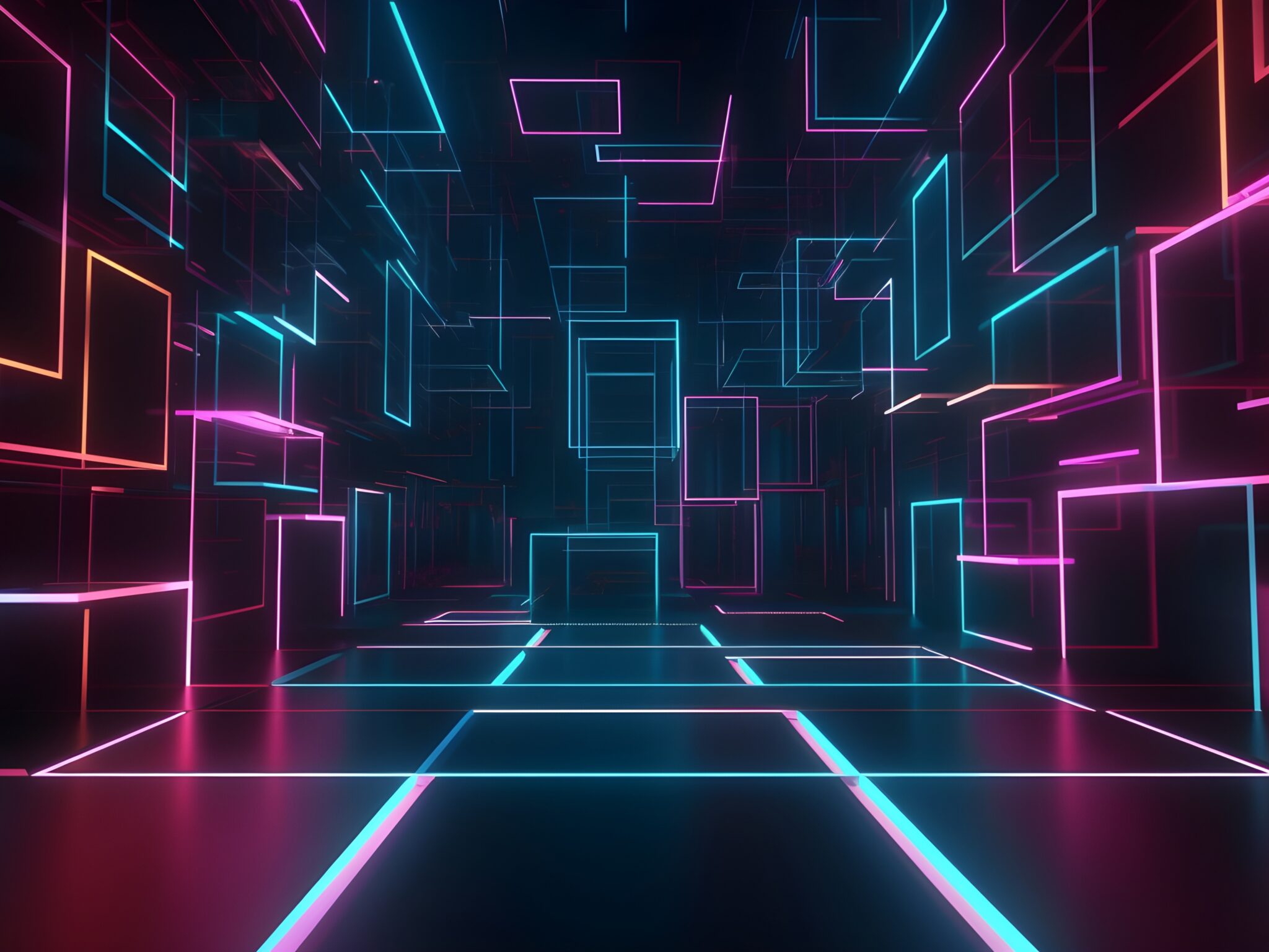 Neon Grid Tunnel | Cyberpunk Perspective Desktop wallpaper 4K