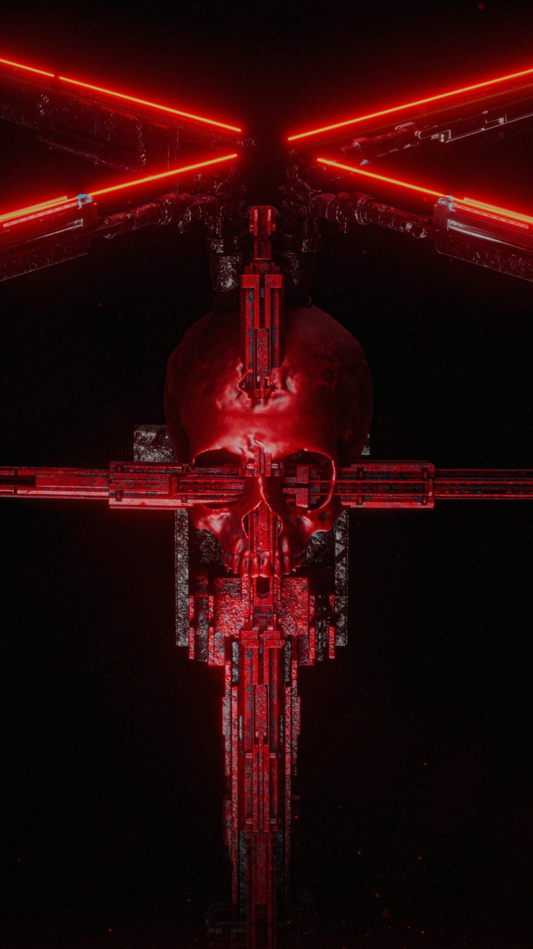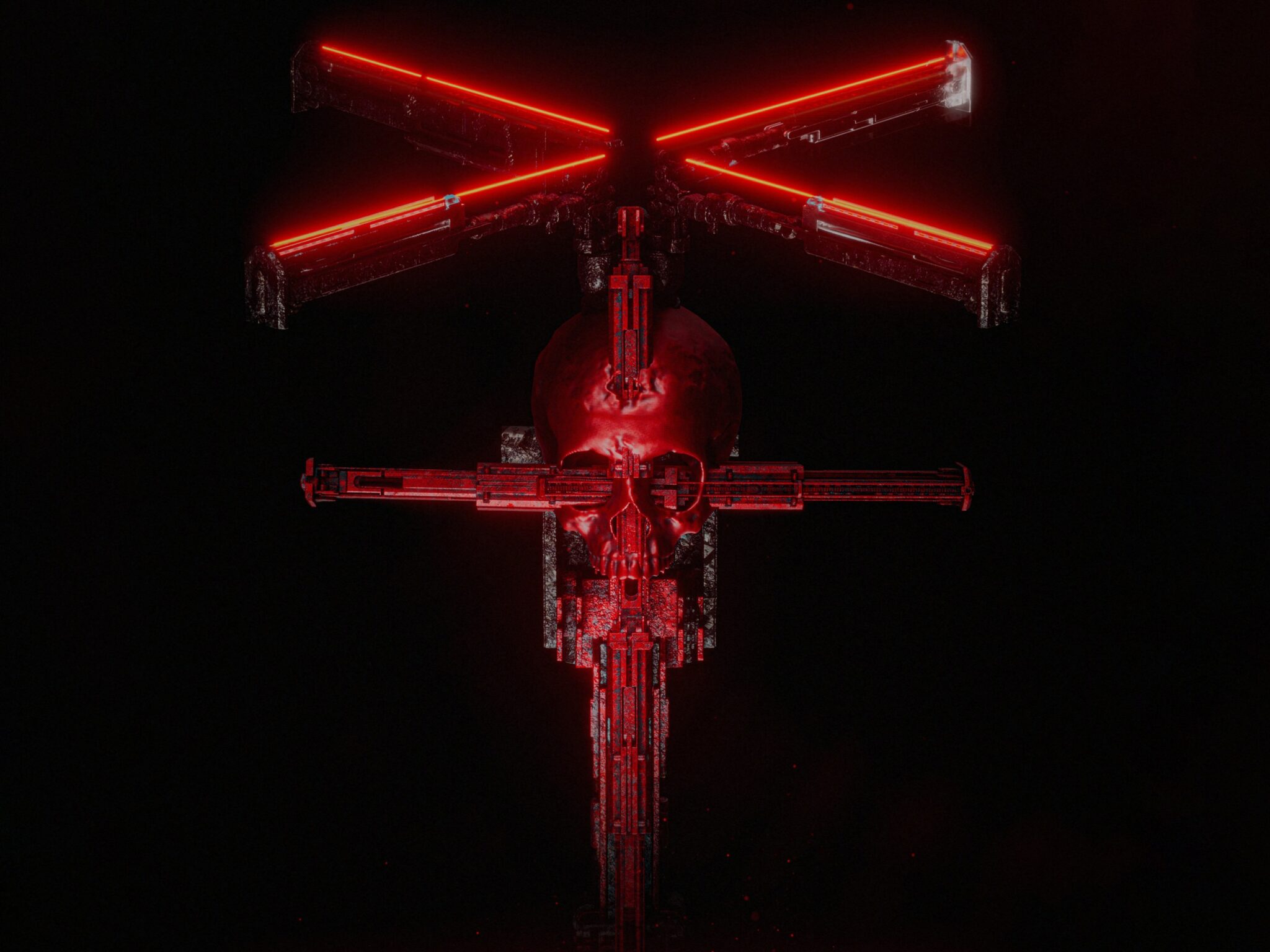 Neon Skull Structure Desktop | Glowing Red Lines
