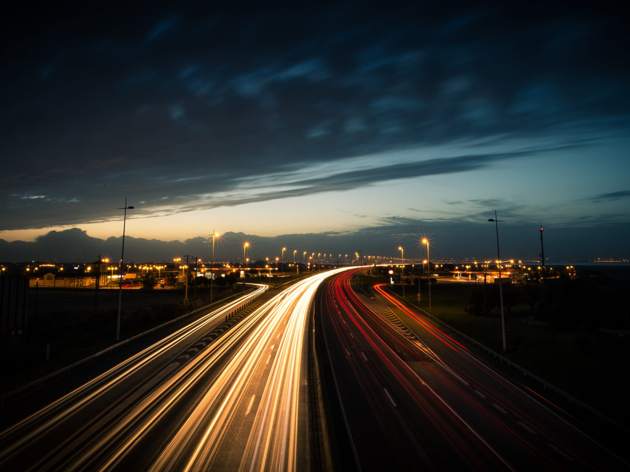 Night Highway Lights | City Skyline Motion Desktop wallpaper 4K